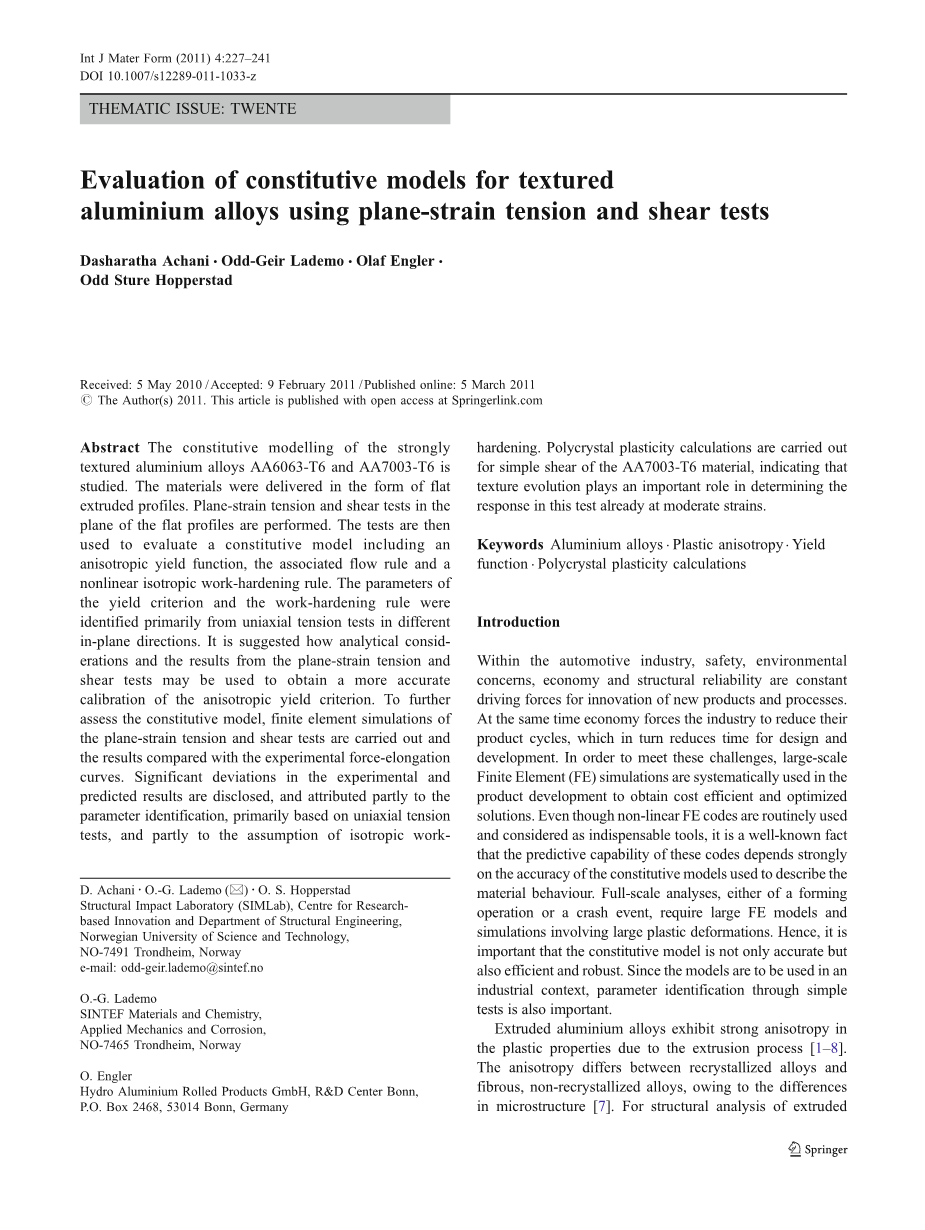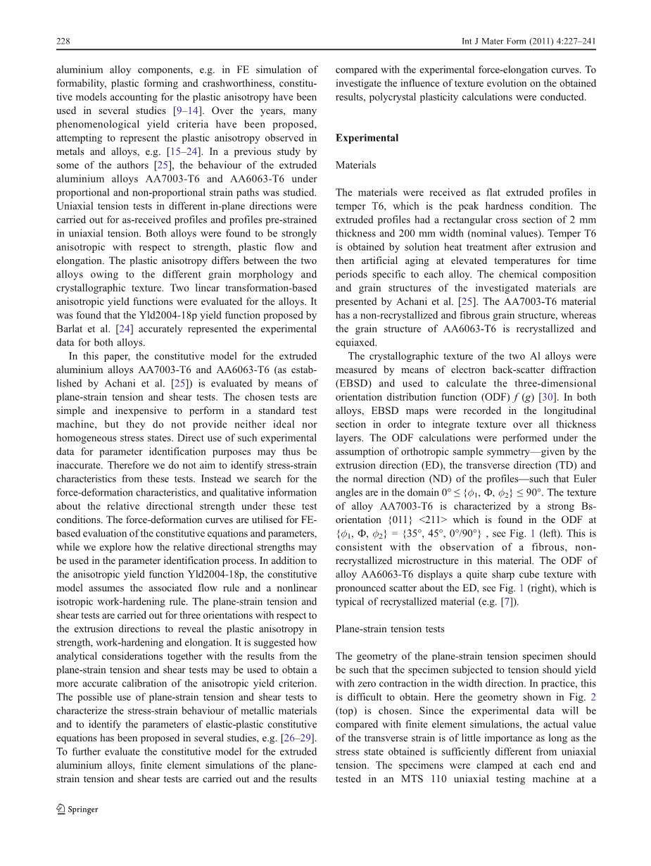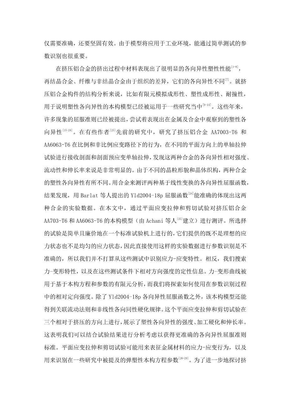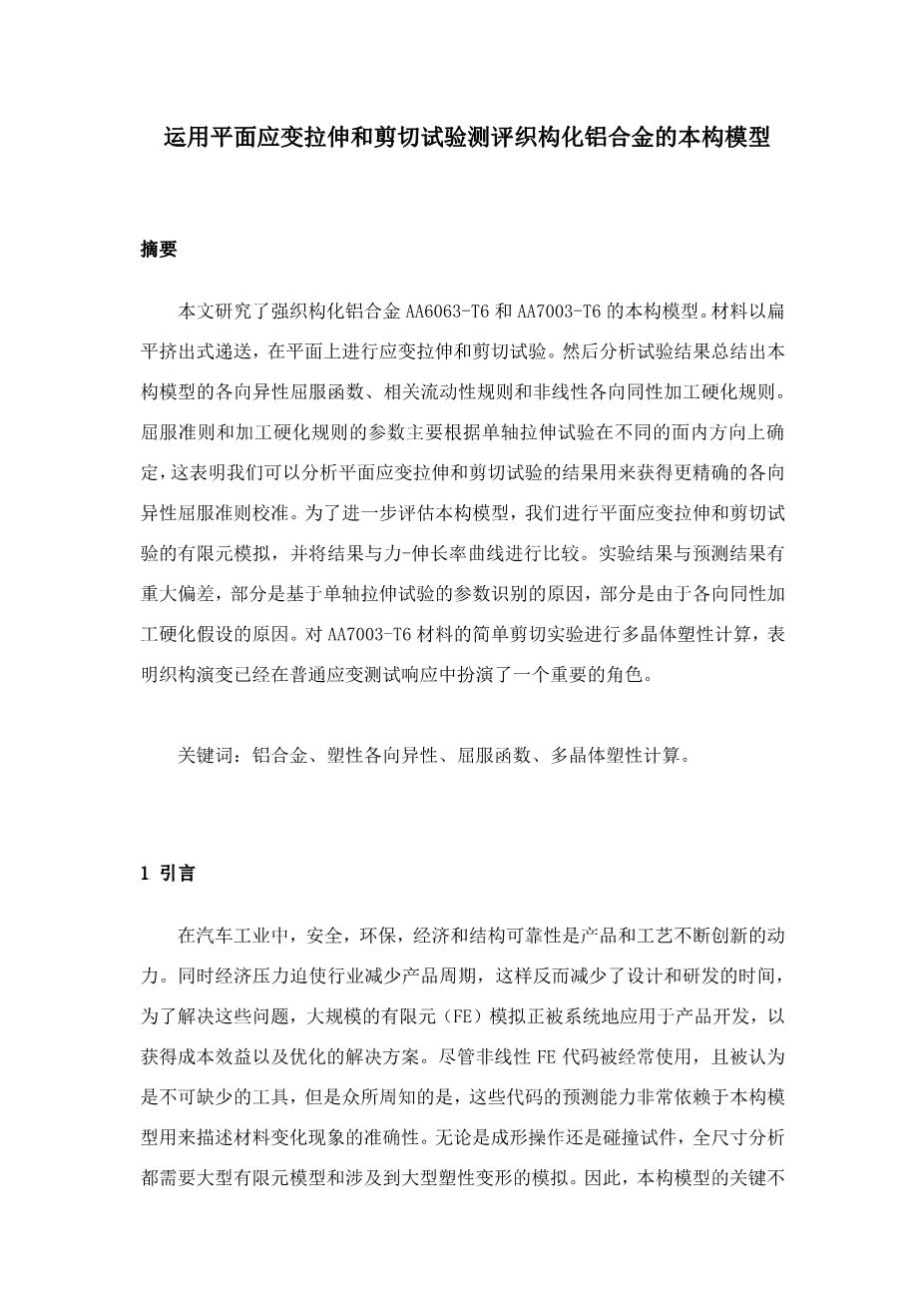 运用平面应变拉伸和剪切试验测评织构化铝合金的本构模型外文翻译资料