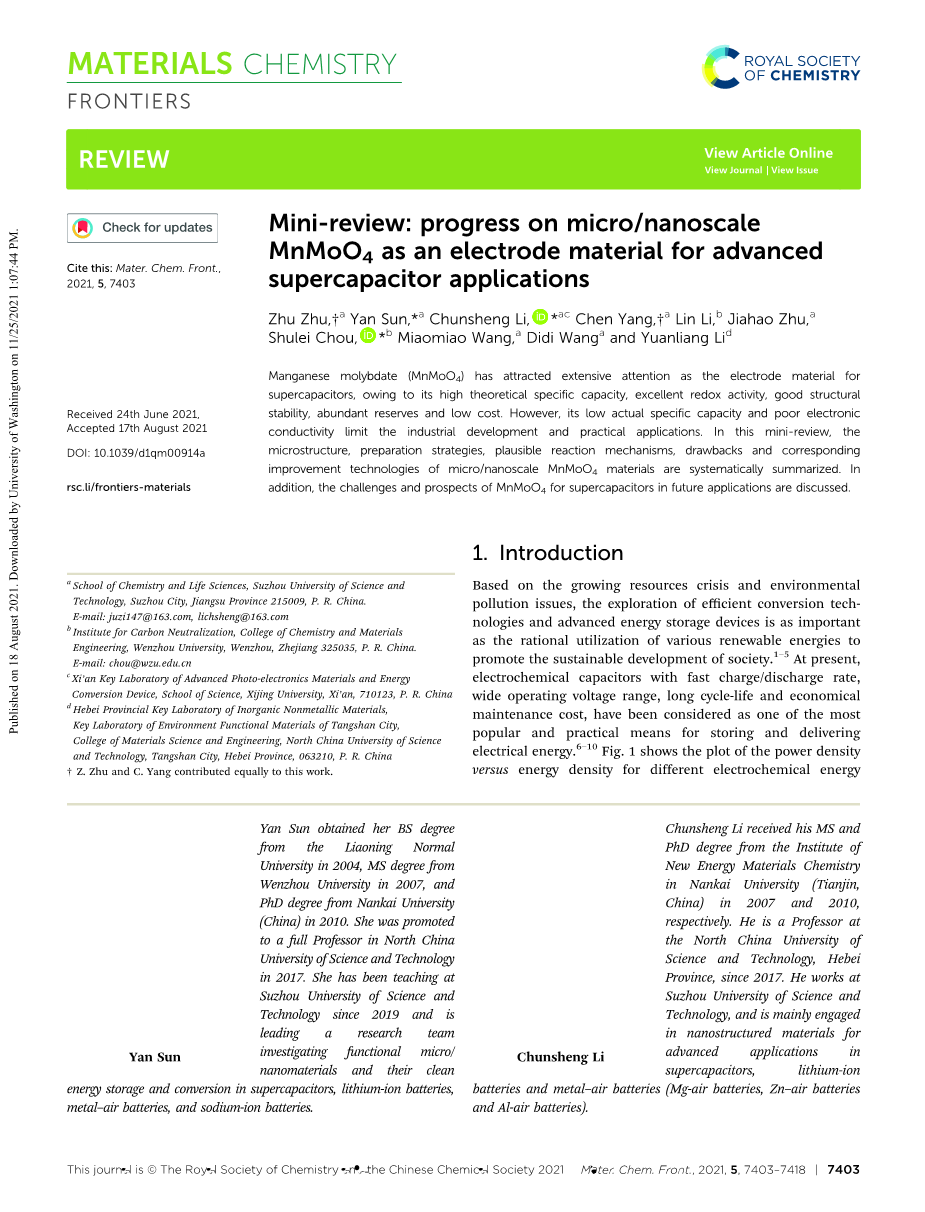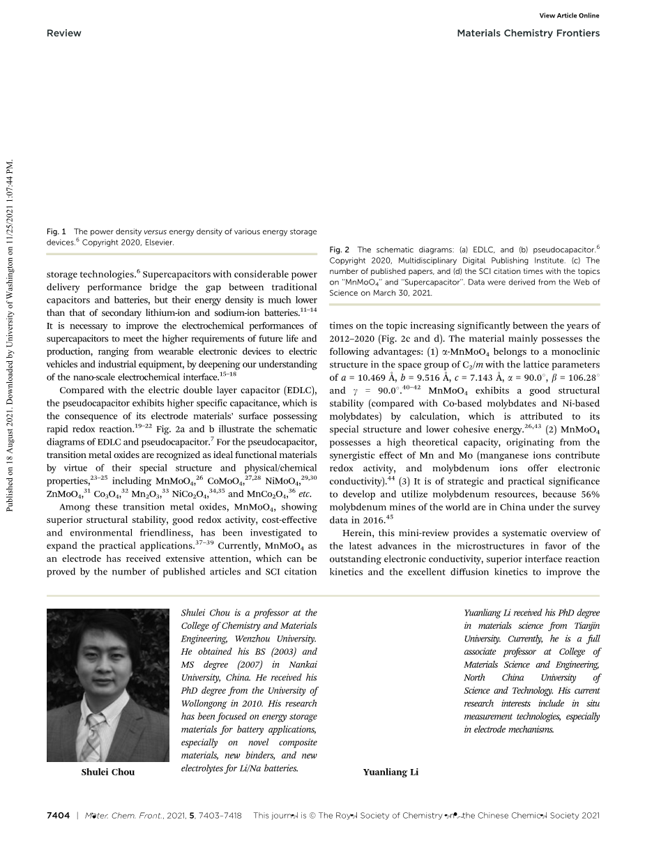微型综述:微/纳米级MnMoO4作为先进超级电容器电极材料的研究进展