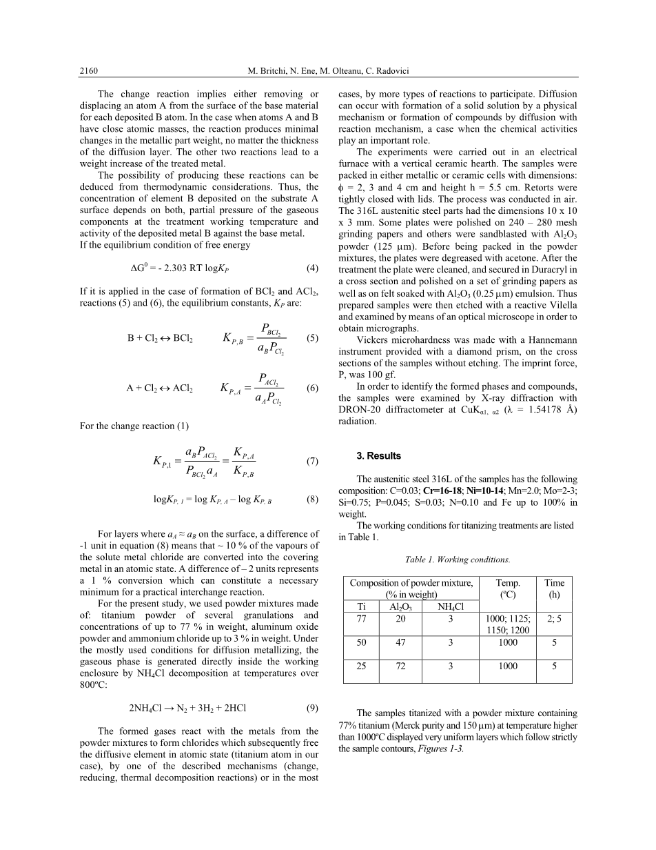 因为扩散层在超过900℃的高温下和热处理好几个小时,钢结构随着物颗粒物增加和显微硬度减少而得到优化。未被热处理的316L奥氏体钢的显微硬度是高压(P = 100 gf )= 203 Kgf /毫米2,而通过保温热处理基质的显微硬度是高压(P = 100 gf) = 158 Kgf /毫米2