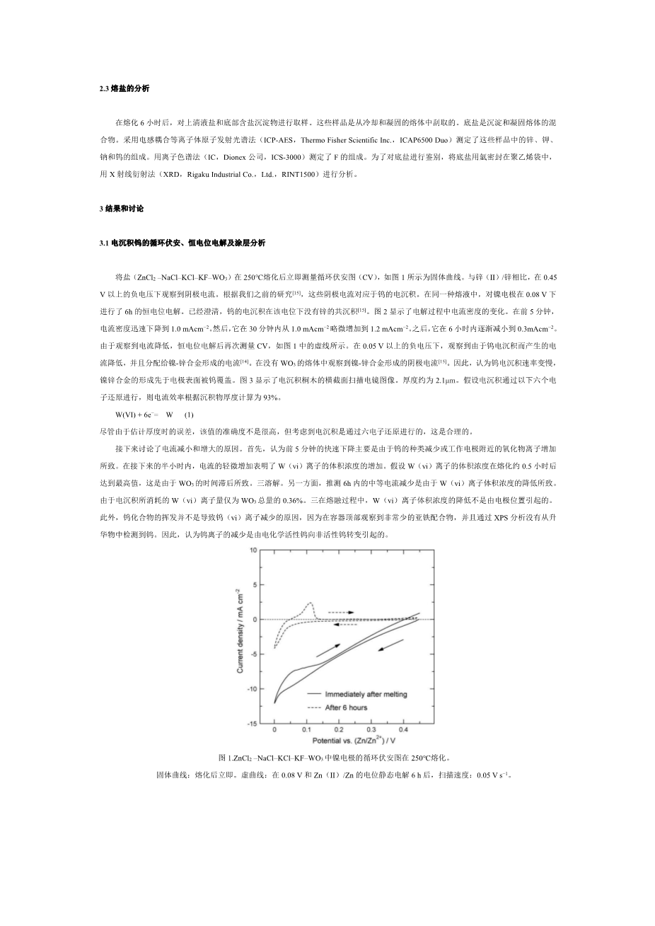 ZnCl2-NaCI-KCI-KF-WO3熔体中钨的电沉积及熔体中钨的种类 研究外文翻译资料