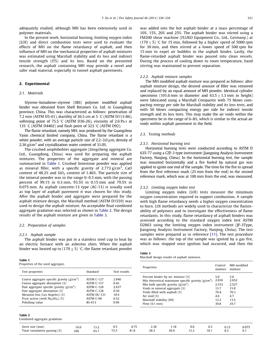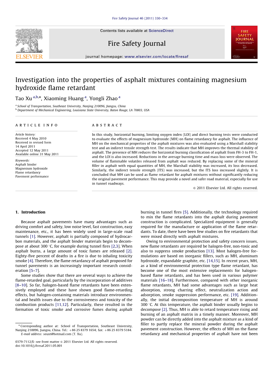 在目前的工作中,使用水平燃烧,极限氧指数(LOI)和直接燃烧测试来评估MH对沥青阻燃性的影响,然后使用马歇尔稳定性估算MH对沥青混合物的机械性能的影响 以及其损耗和间接拉伸强度(ITS)及其损耗。基于目前的研究,尤其是在隧道沥青路面中,含MH的沥青可提供一种新型,更安全的道路材料。