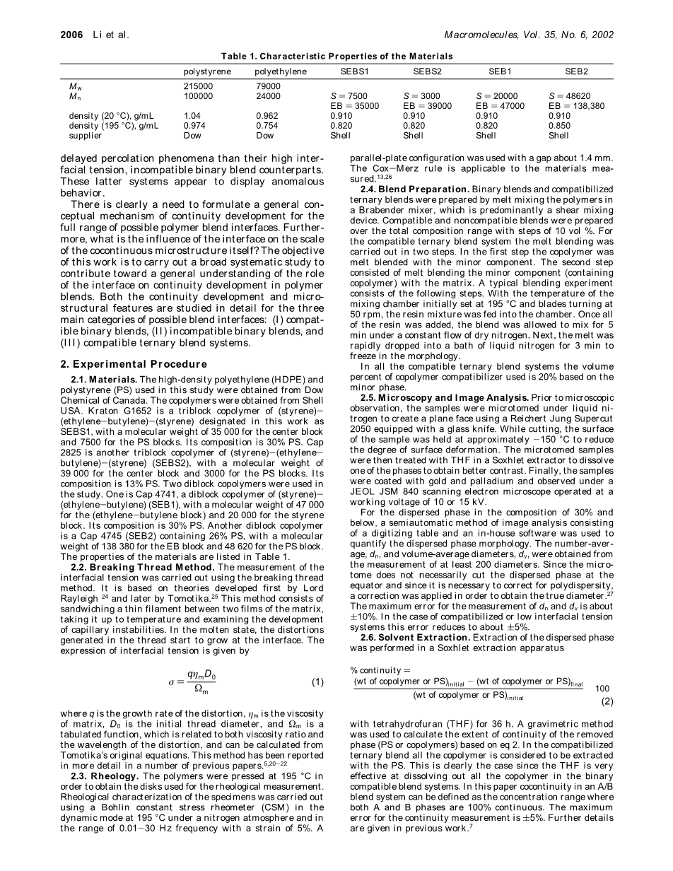 本研究中使用两种二嵌段共聚物。一种是Cap 4741,(苯乙烯) - (乙烯 - 丁烯)(SEB1)的二嵌段共聚物,(乙烯 - 丁烯嵌段)的分子量为47000,苯乙烯嵌段的分子量为20 000。其组成是30%PS。