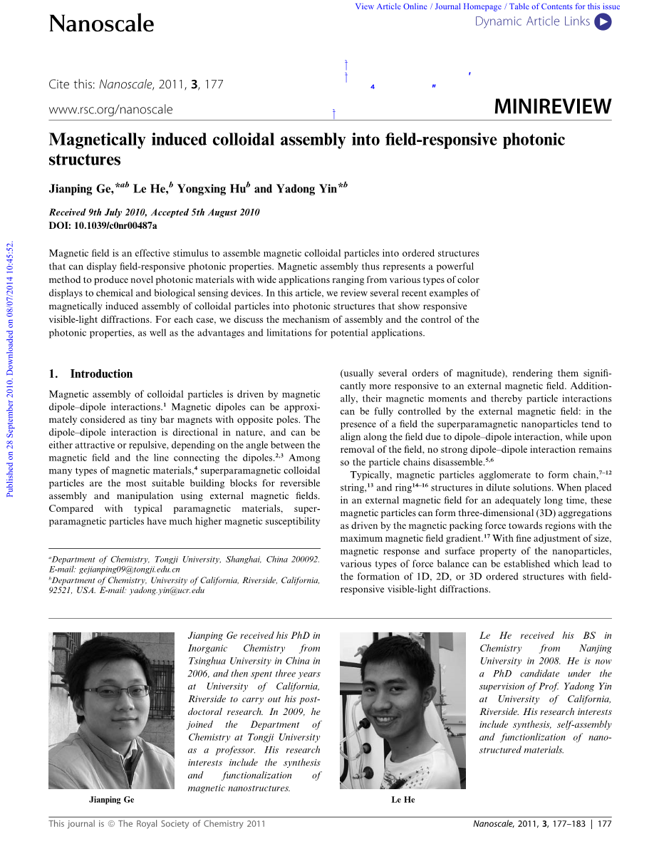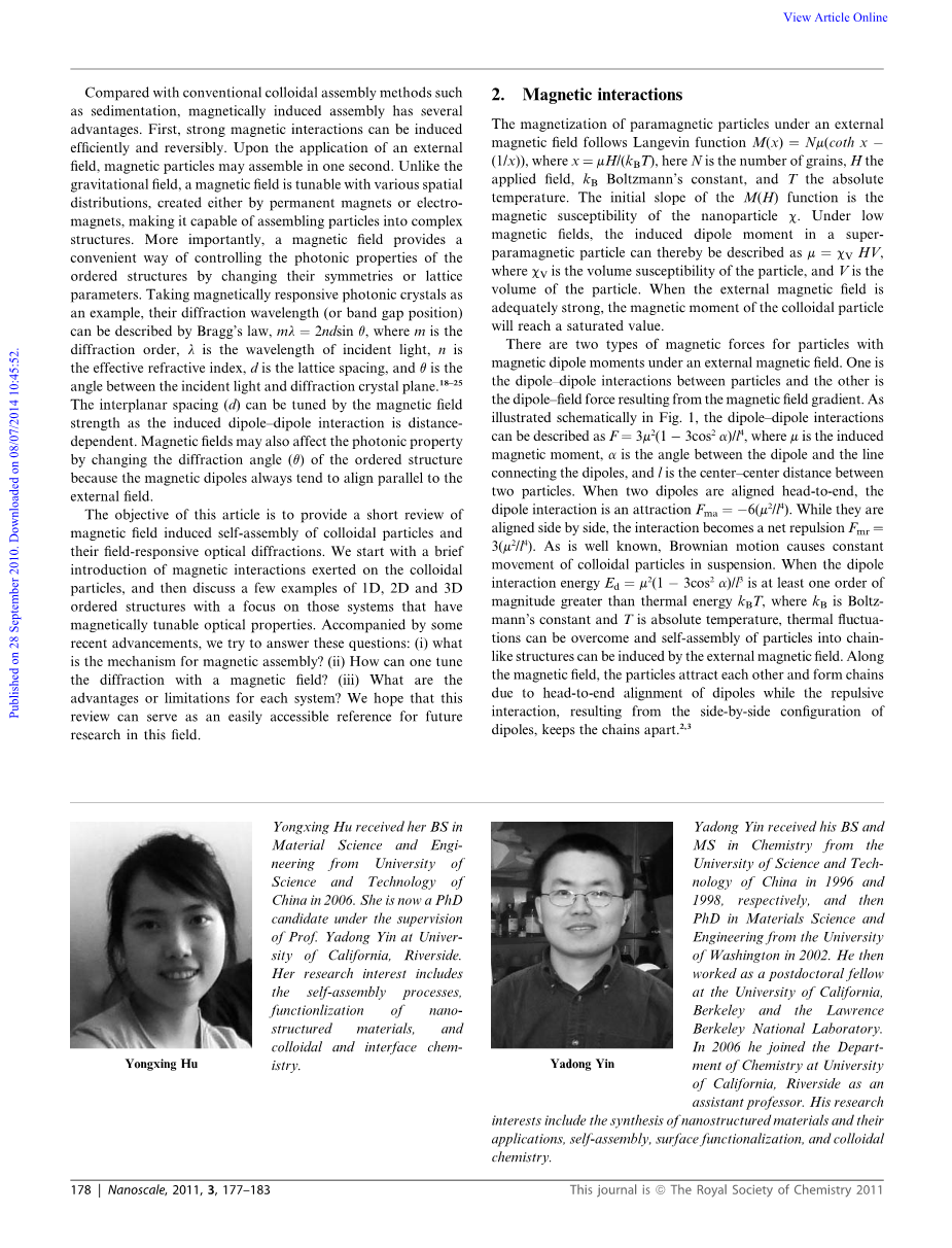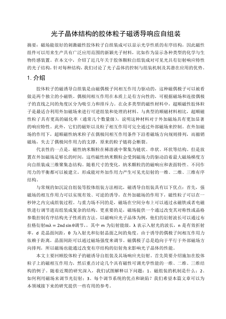 光子晶体结构的胶体粒子磁诱导响应自组装外文翻译资料