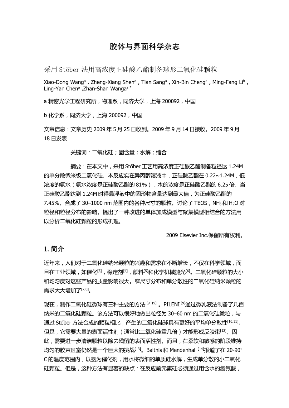 采用Stober法用高浓度正硅酸乙酯制备球形二氧化硅颗粒外文翻译资料 2023-02-06 08:43:19 英语原文共 7 页,剩余内容已隐藏,支付完成后下载完整资料 英语译文共 13 页,剩余内容已隐藏,支付完成后下载完整资料 资料编号:[416042],资料为PDF文档或Word文档,PDF文档可免费转换为Word 您需要先支付 30元 才能查看全部内容!立即支付 发小红书推广免费获取该资料资格。点击链接进入获取推广文案即可: Ai一键组稿 | 降AI率 | 降重复率 | 论文一键排版 PREVIOUS NEXT 您可能感兴趣的文章 利用原子转移自由基聚合合成聚苯乙烯开题报告 银杏叶中双黄酮的提取分离开题报告 N-叔丁氧羰基-L-脯氨酰-L-色氨酸的合成开题报告 聚苯胺的制备及其在超级电容器方面的应用文献综述 亚苯基主链萨伦铬的制备及催化二氧化碳共聚合的研究文献综述 镧合并ß-Ni(OH)2纳米阵列用于稳健的尿素电氧化外文翻译资料 基于Lewis碱性吡啶的金属有机荧光探针外文翻译资料 软配体在纳米粒子超晶格组装中的作用外文翻译资料 Janus膜具有可控的不对称配置,用于高效的油乳液分离外文翻译资料 具有 Janus 表面的中空纤维膜用于水包油乳液的连续破乳和分离 ——副标题外文翻译资料