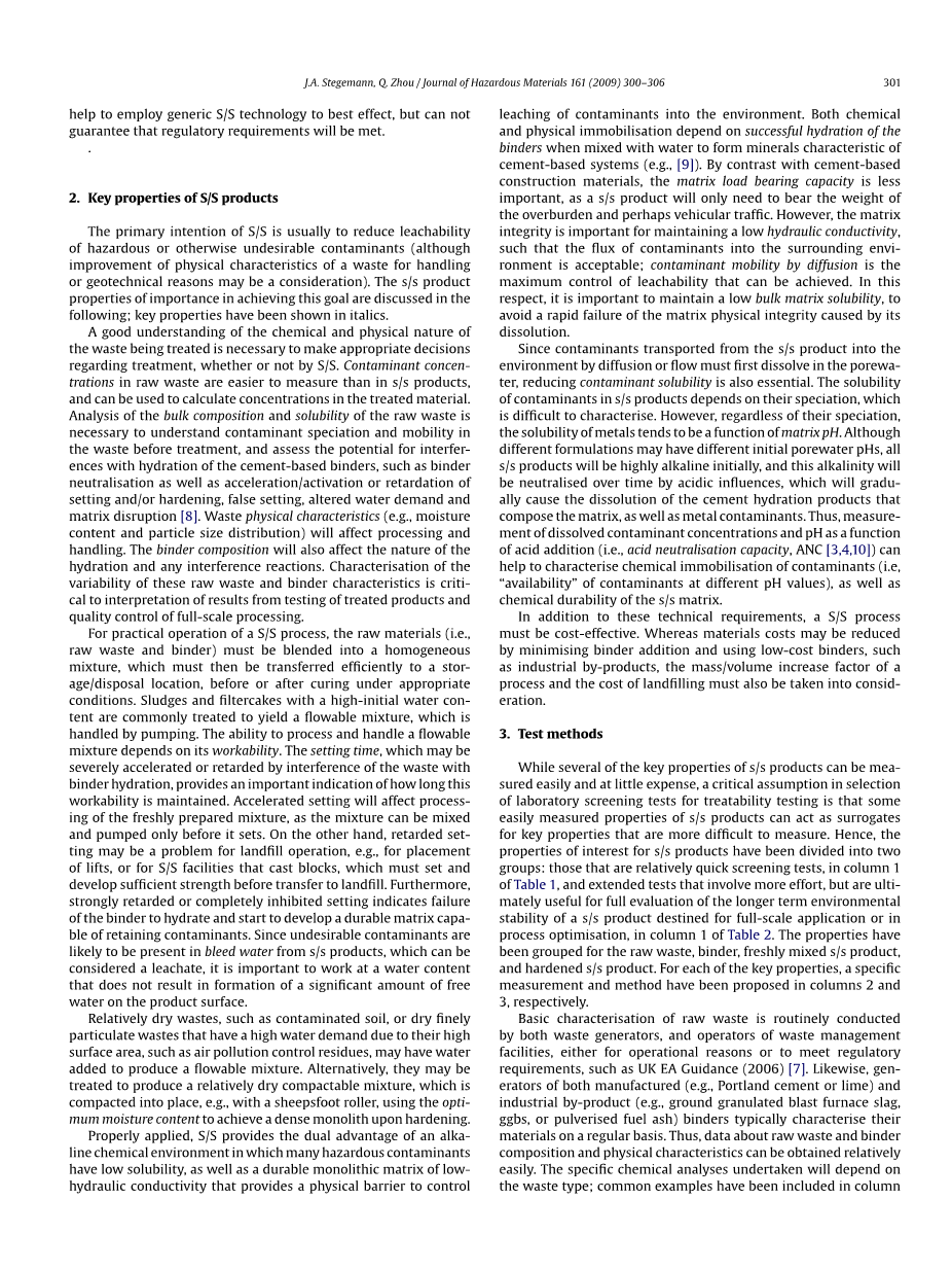 在可处理性测试和过程优化的上下文中,对于对S / S的有效性进行科学严格评价的重要性质有越来越多的共识(例如,[3-6]),以及认识到这些不能通过在2小时的混合内的快速测试来测量,正如作者所观察到的典型的工业实践。然而,基于对基于水泥的系统和污染物固定机制的基础化学的理解,可以简化用于S / S过程开发的s / s产品的测试。本文提出并确定在S / S过程的实验室开发中使用一系列测试方法,包括可处理性测试和过程优化的早期阶段。这些测试旨在补充各个监管机构(例如英国环境署[7])所要求的废物验收和分类测试,并且此提案与某些监管方法之间可能存在重叠。使用这些测试可以帮助采用通用S / S技术实现最佳效果,但不能保证满足监管要求。