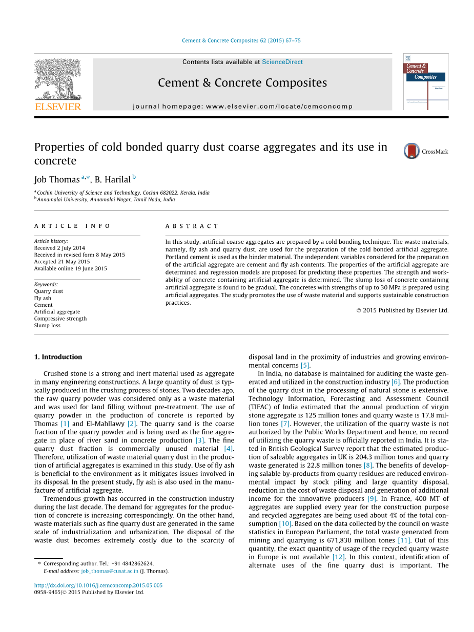 在过去的十年中,建筑业出现了惊人的增长,因此用于混凝土生产的骨料的需求相应地增加。另一方面,在工业化和城市化的规模相同的情况下,也会产生诸如细采石场粉尘等废料。由于工业区附近缺乏处理土地,环境问题日益严重,因此处理这些粉尘的费用变得极其昂贵[5]。