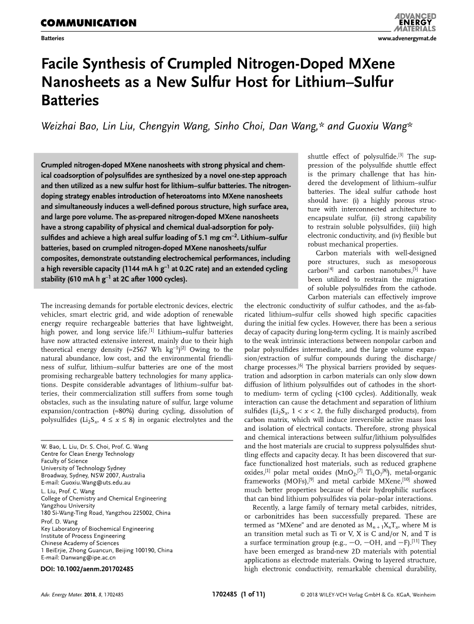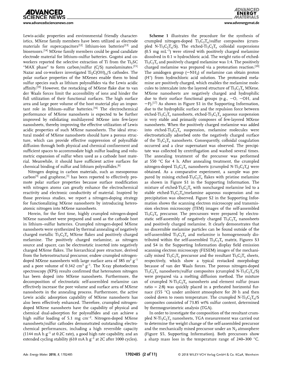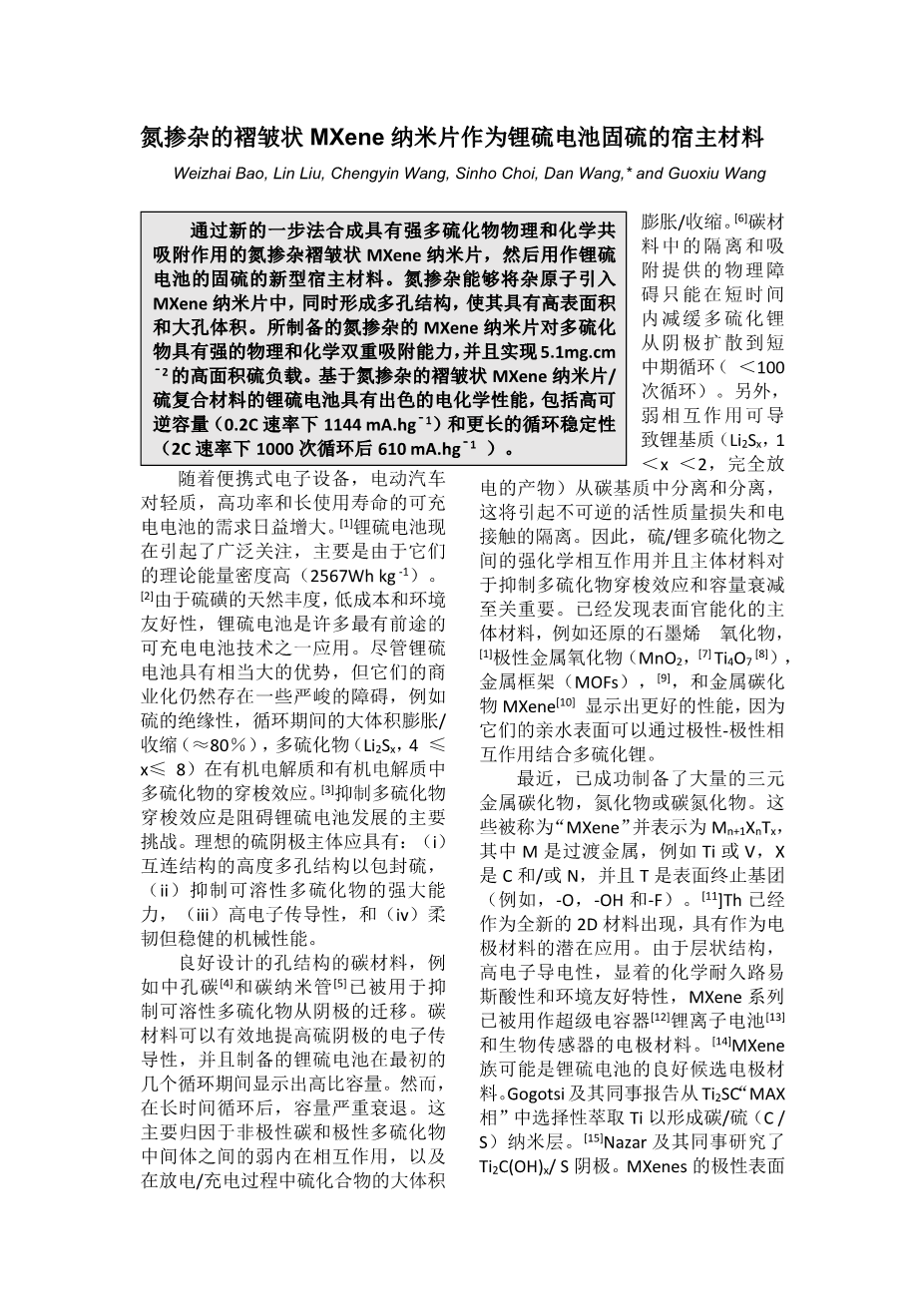 - 氮掺杂的褶皱状MXene纳米片作为锂硫电池固硫的宿主材料外文翻译资料