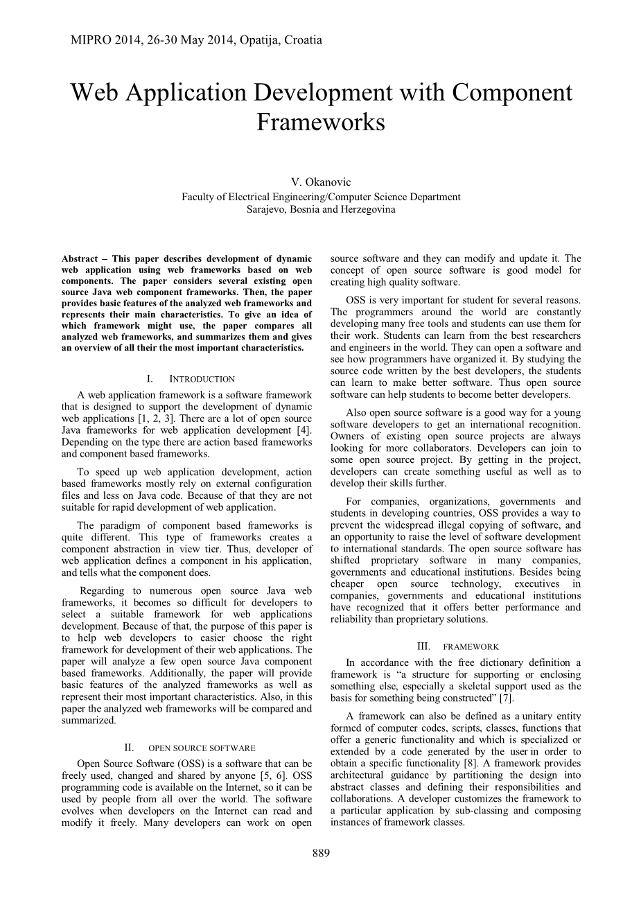 关于众多开源Java Web框架,开发人员很难为Web应用开发选择合适的框架。正因为如此,本文的目的是帮助Web开发人员更容易地选择合适的框架来开发他们的Web应用程序。本文将分析一些基于Java组件的开源框架。此外,本文还将提供所分析框架的基本特征,以及它们最重要的特征。此外,本文还将对所分析的Web框架进行比较和总结。