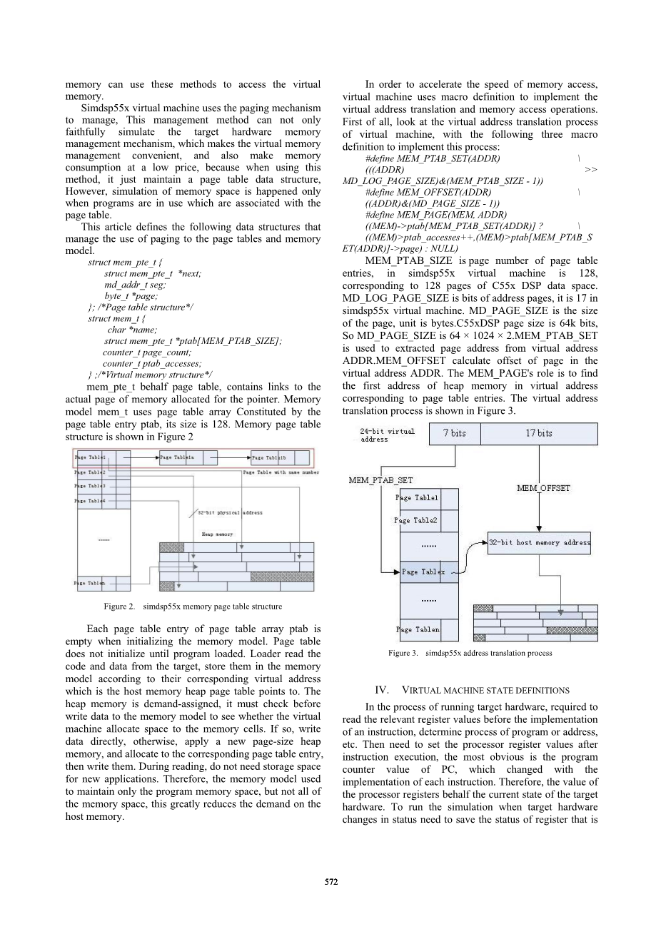 SimDSP55虚拟机采用分页机制进行管理,这种管理方法不仅可以忠实地模拟目标硬件内存管理机制,使虚拟内存管理方便,而且内存消耗低,因为在使用该方法时,它只维护页表数据结构,但是,只有在与页表相关联的程序使用时才发生内存空间的模拟。