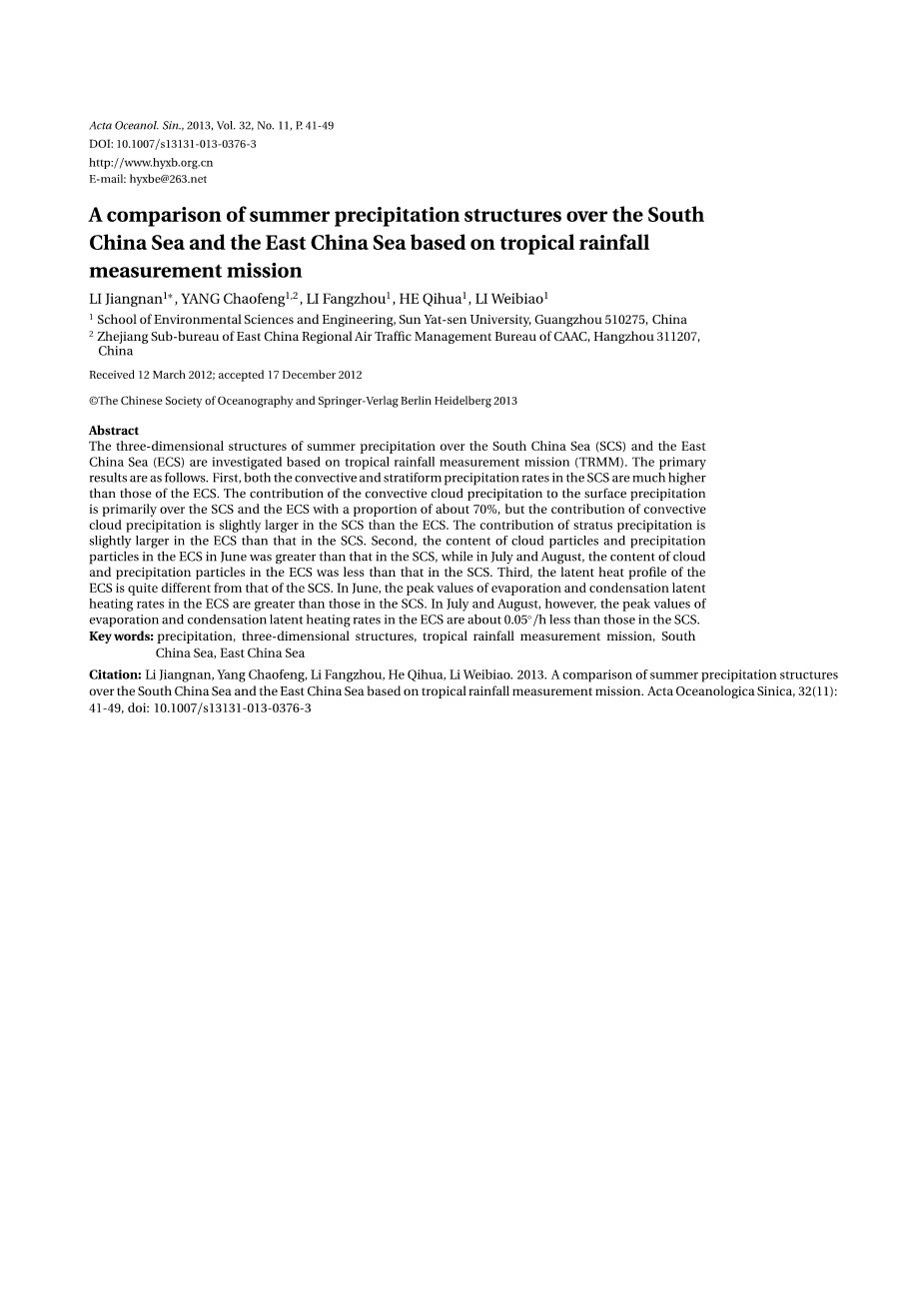 关键词:降水、三维结构、南方热带降雨测量任务、南海、东海