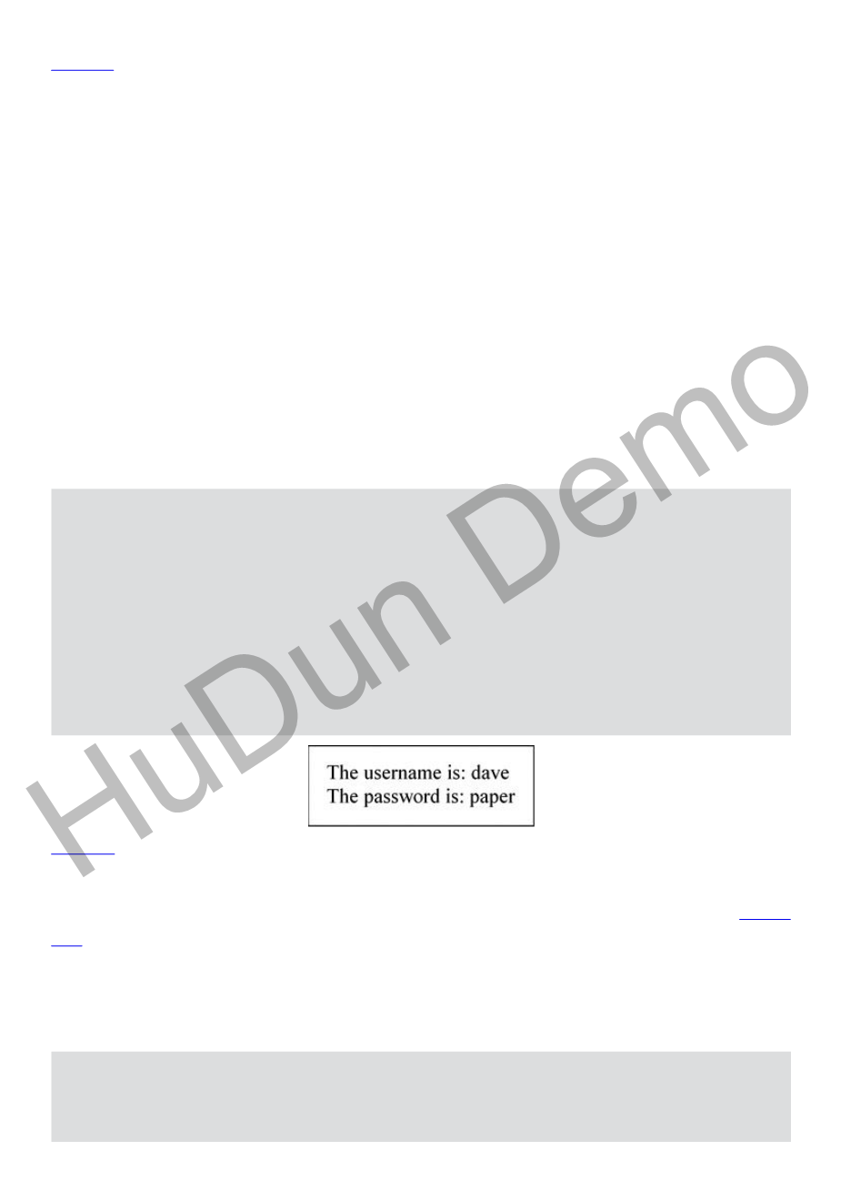 变量“$username”和“$password”分别用“dave”和“paper”代表(第3、4行)。字符串用了两个“echo”语句来显示(第5、6行)。图1.32展示了通过浏览器加载后的URL的PHP代码的最终显示效果。
