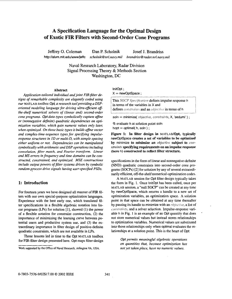基于二阶锥程序的奇异FIR滤波器优化设计规范语言外文翻译资料 2023-03-03 17:30:44 英语原文共 5 页,剩余内容已隐藏,支付完成后下载完整资料 资料编号:[146466],资料为PDF文档或Word文档,PDF文档可免费转换为Word 您需要先支付 30元 才能查看全部内容!立即支付 发小红书推广免费获取该资料资格。点击链接进入获取推广文案即可: Ai一键组稿 | 降AI率 | 降重复率 | 论文一键排版 PREVIOUS NEXT 您可能感兴趣的文章 DC/DC变换器效率自动测试系统文献综述 棒状热敏电阻温度传感器的太阳辐射误差仿真分析文献综述 超宽带天线设计文献综述 智能晾衣架系统设计开题报告 基于涡流效应的便携式油漆膜厚仪设计开题报告 基于STC89C52单片机的火灾报警系统设计开题报告 基于三阵元天线阵的雷达测角方法研究开题报告 室内有害气体监测系统的设计开题报告 可自锁智能煤气泄漏控制器的设计文献综述 基于STM32的高速触觉信号采集系统文献综述