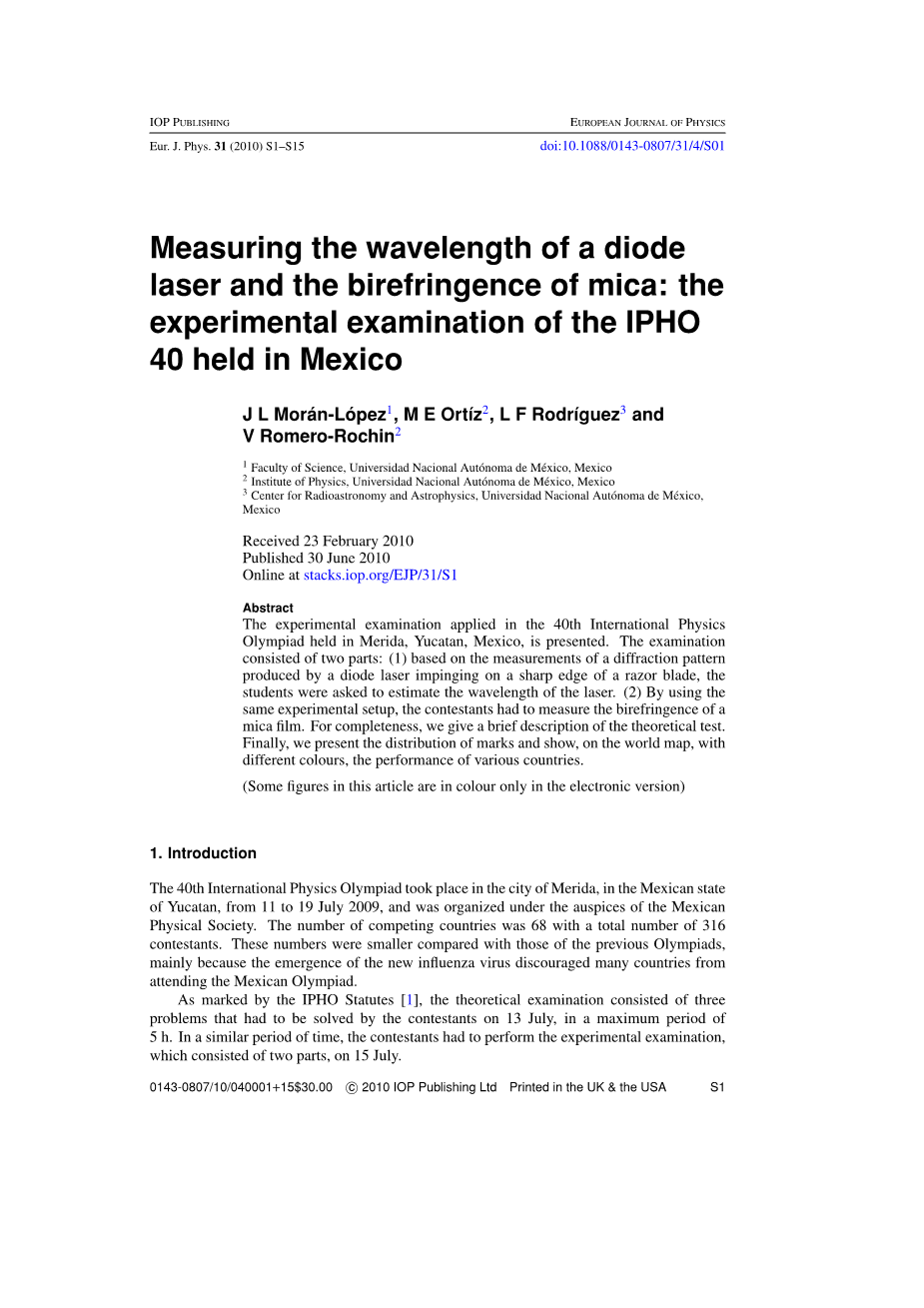 在墨西哥举行的第40届IPHO 实验竞赛:测量二极管激光器的波长和云母双折射