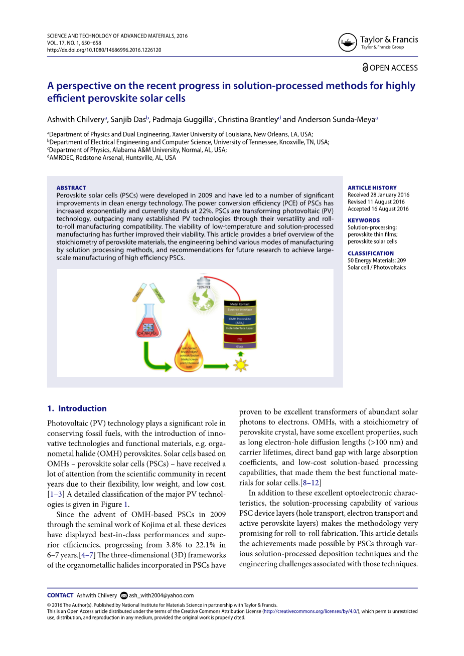 关于高效钙钛矿太阳能电池的溶液处理方法的最新进展的观点