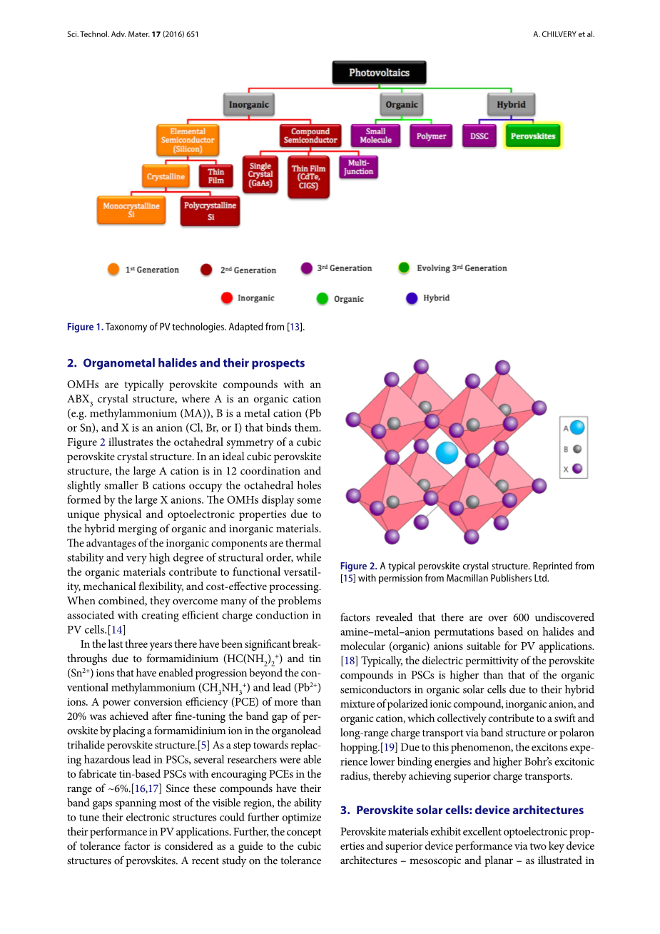 由于甲脒(HC(NH2)2 )和锡(Sn2 )离子使进展超出了传统的甲胺(CH3NH3 )和铅(Pb2 )离子,在过去三年里已经有了重大突破。通过将一个甲胺离子放置在有机铅三卤化物钙钛矿结构中来微调钙钛矿带隙之后,功率转换效率(PCE)达到20%以上 [5] 。作为朝着替换有危险的钙钛矿太阳能电池方向前进的一步,几个研究人员能够制造含锡类钙钛矿太阳能电池,鼓舞人心的是其功率转换效率在6%范围内。(16、17)因为这些化合物有着跨越大多数可见光区的带隙,调整他们的电子结构的能力可以在光伏应用上进一步优化其性能。此外,容许系数的概念被认为是一个立方钙钛矿结构的指导。最近的一项关于容许因素的研究显示,有超过600未被发现的基于卤化物和分子(有机)阴离子的胺-金属-阴离子排列适合光伏应用 [18] 。通常,钙钛矿太阳能电池中的钙钛矿化合物的介电常数已经高于有机太阳能电池中的有机半导体,因为极化离子化合物、无机离子、有机阳离子的混合物,全部有助于通过能带结构或极化子跳跃的迅速、远程的电荷传输[19]。,由于这一现象,激发子拥有较低的结合能和较高的波尔激发子半径,从而实现卓越的电荷传输。