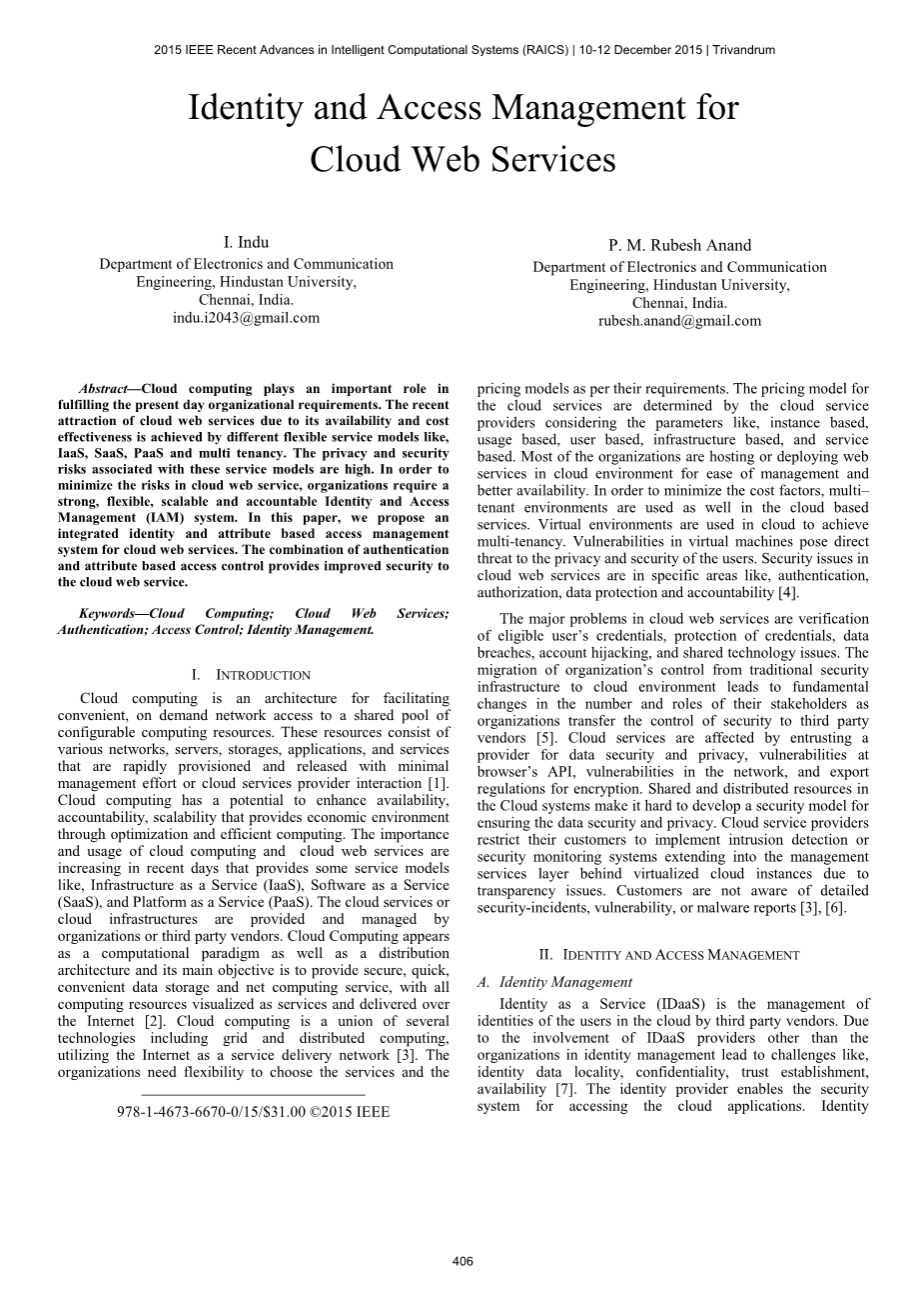 集成身份和基于属性的访问控制方法为利益相关者提供了最大的灵活性,而不会影响安全性。该模型是可扩展的,以将云环境中的多个身份系统和服务提供商应用集成到单个模块中。它还可以灵活地为云环境中的每个Web服务创建特定于组织的访问规则,确保完整的跨