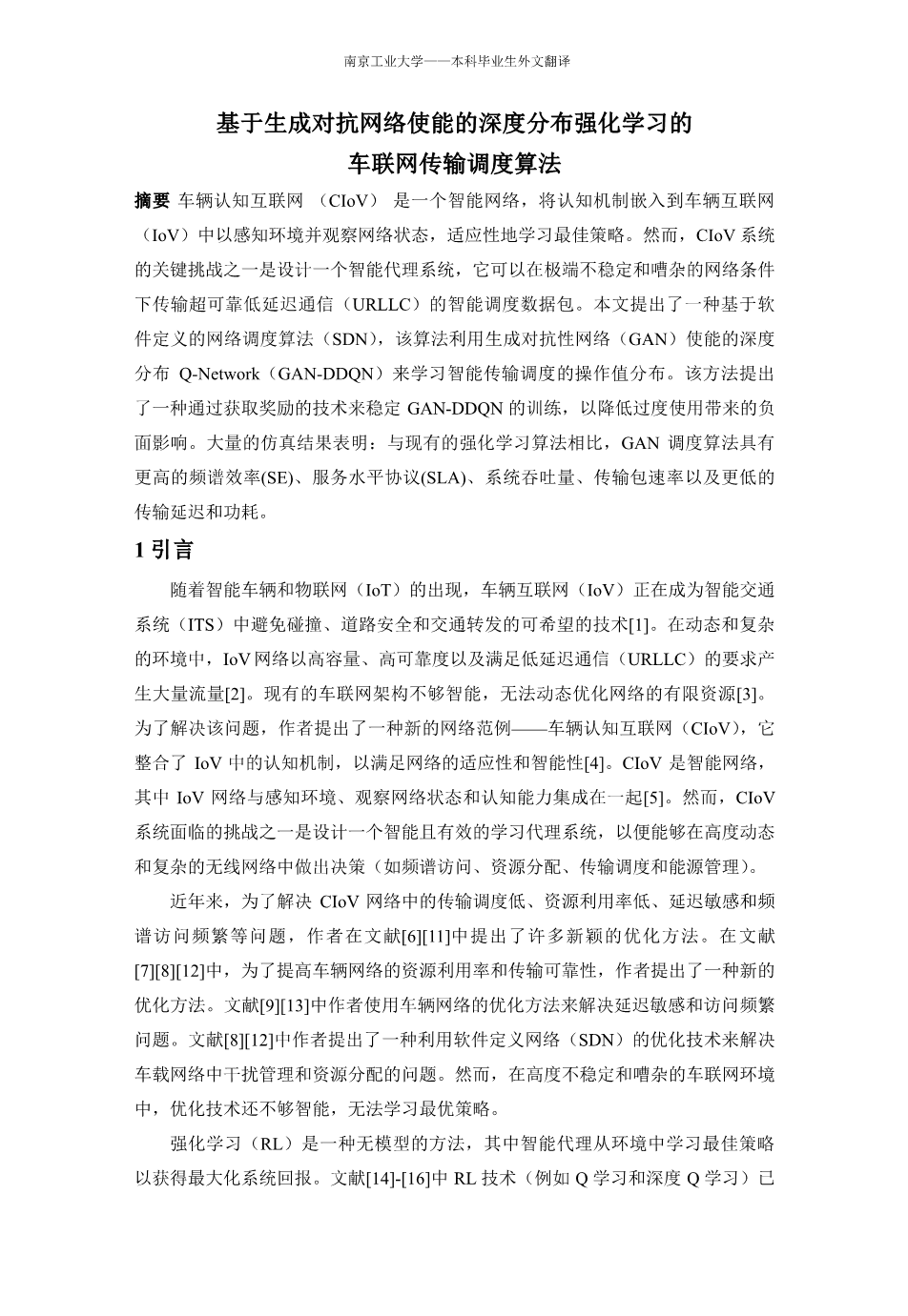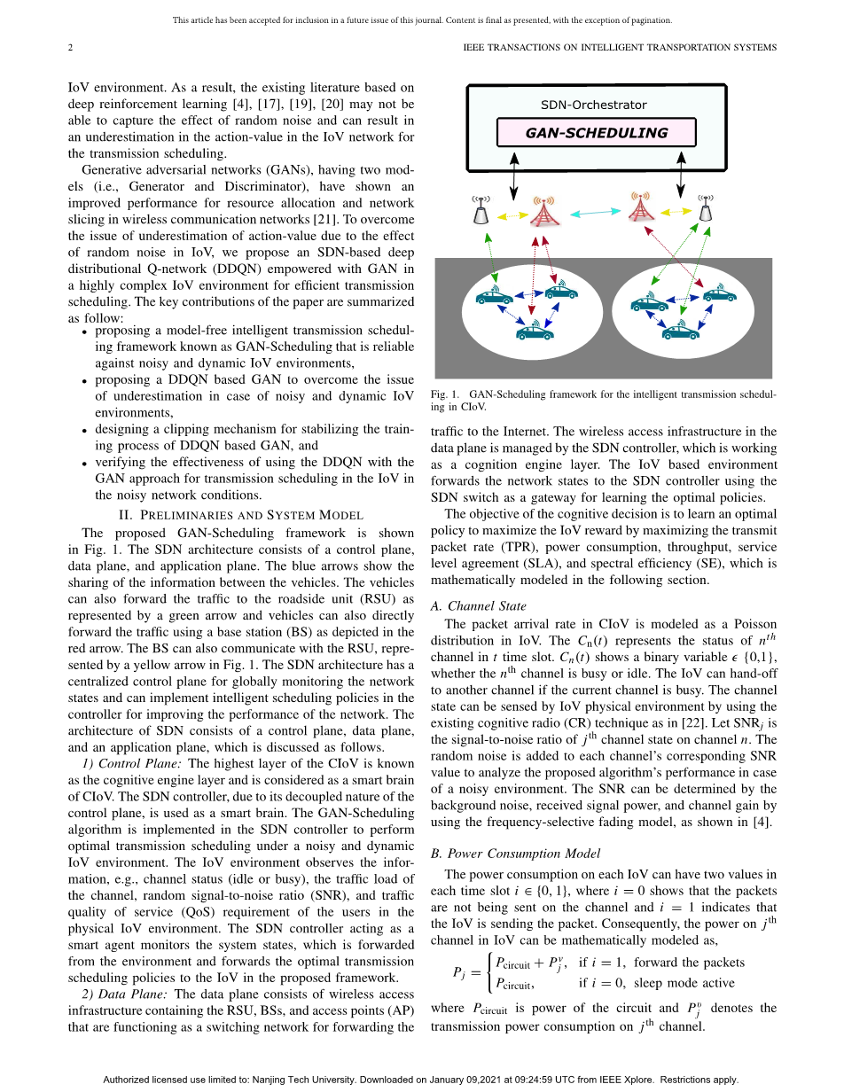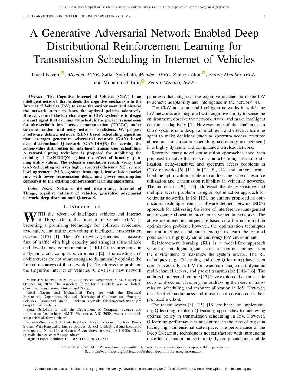 基于生成对抗网络使能的深度分布强化学习的 车联网传输调度算法外文翻译资料
