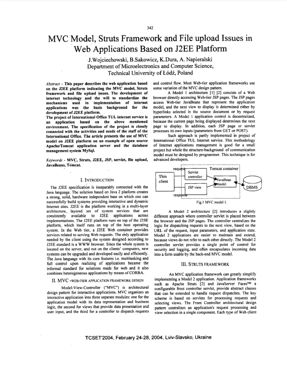 基于J2EE的Web应用中MVC模型、Struts框架和文件上传问题 约翰沃伊茨豪斯基萨科维奇杜拉纳皮尔斯基外文翻译资料