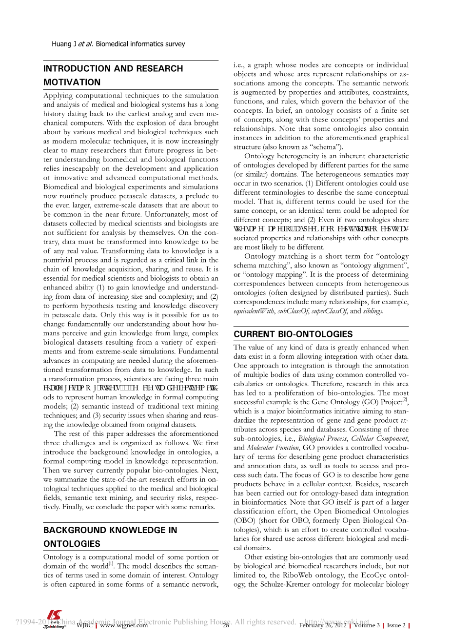 本文的其余部分讨论了上述三大挑战,我们首先介绍了本体的背景知识,这是知识表示中的一种形式计算模型。然后我们对当前流行的生物本体论进行了综述。接下来,我们分别总结了在医学和生物学领域、语义文本挖掘和安全风险方面的最新研究成果。最后,我们总结了本文的结束语。