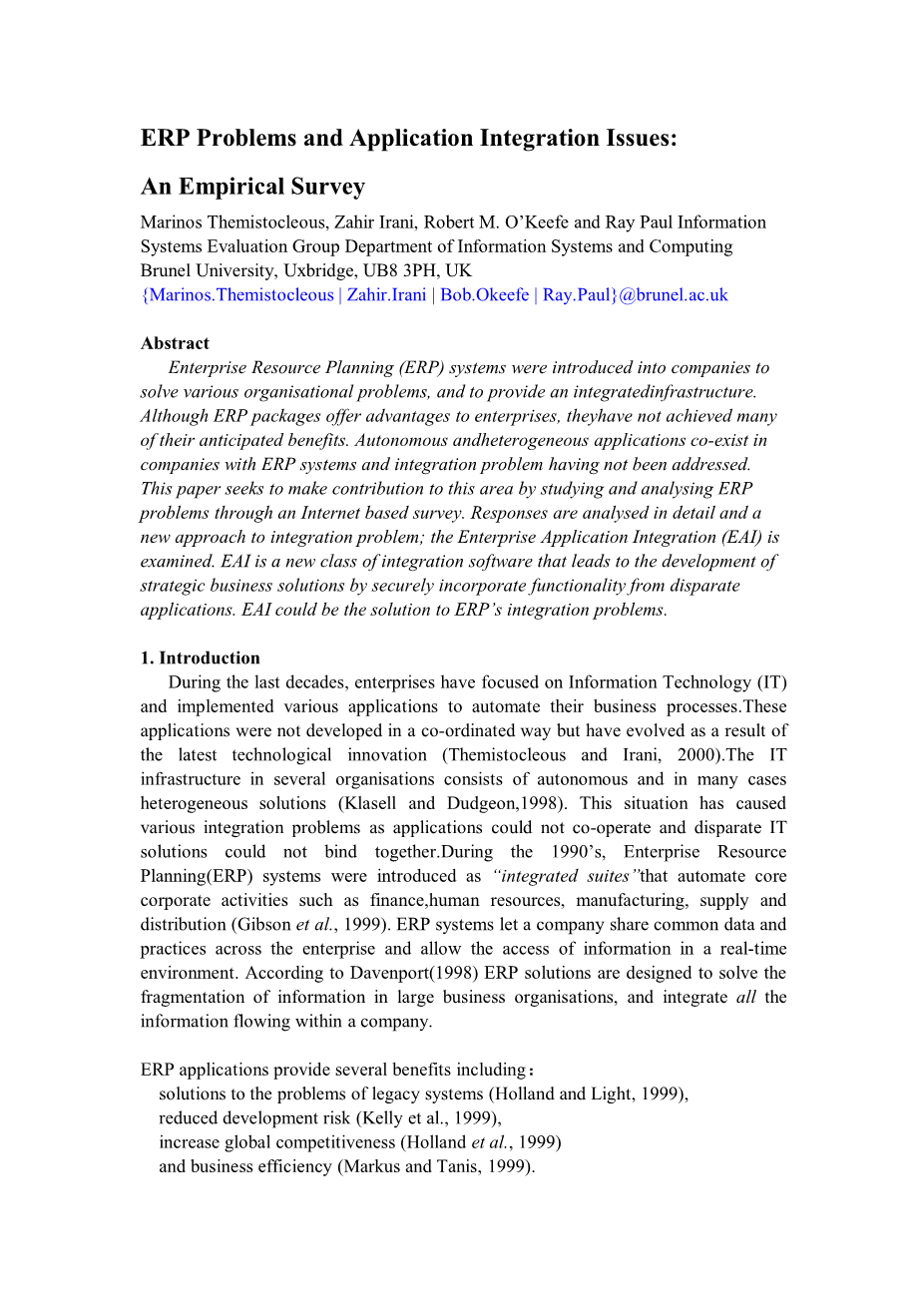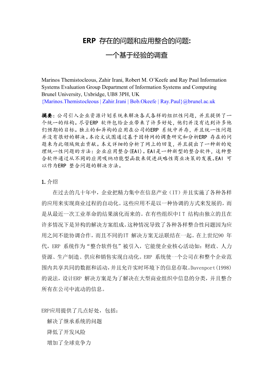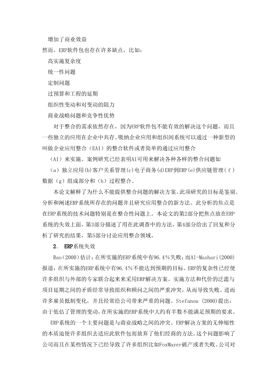 ERP存在的问题和应用整合的问题: 一个基于经验的调查外文翻译资料