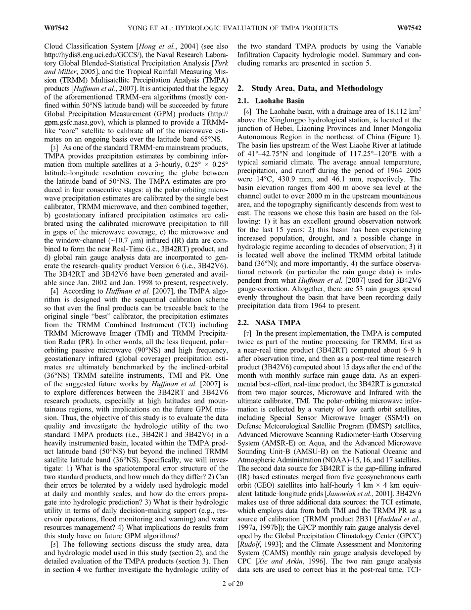 接下来的部分讨论了本研究使用的研究区域、数据和水文模型(第二节),以及对TMPA产品的详细评价(第三节)。在第四节中,我们利用变入渗量水文模型进一步考察了两种地面观测TMPA产品的水文效用。摘要及说明载于第5条。