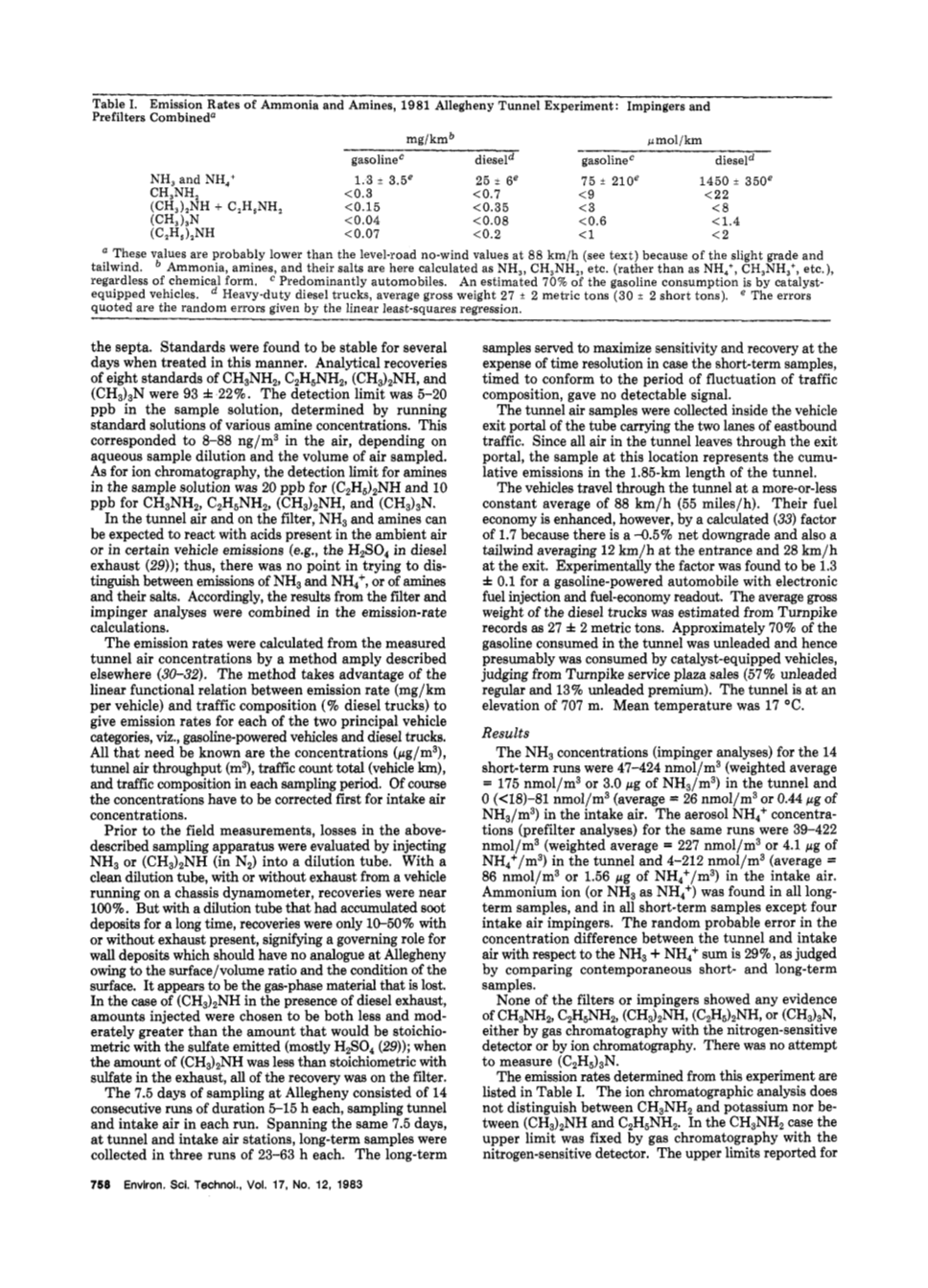 1981年7月22日至30日,胺和氨与它们的盐在宾夕法尼亚州收费公路阿勒格尼山隧道被一起测量。通过含有0.01