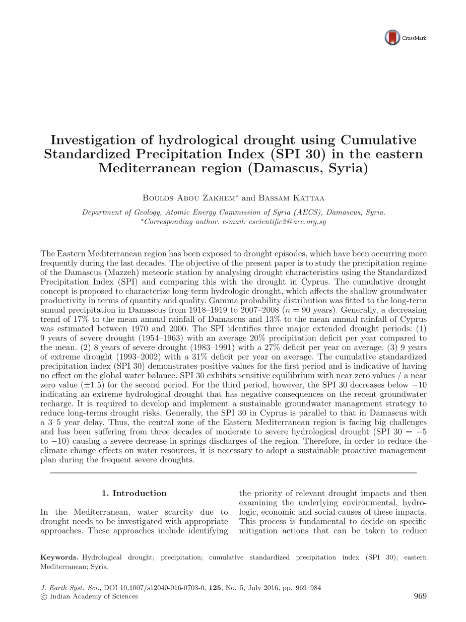 关键词:水文干旱;降水;累积标准化降水指数;东部地中海;叙利亚