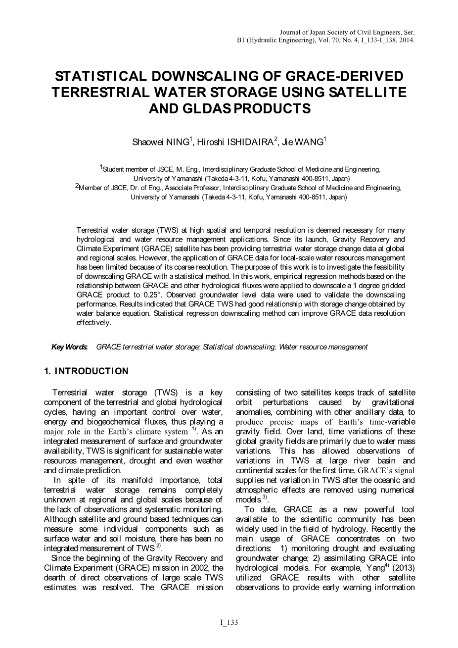 关键词:GRACE陆面水储量;统计降尺度;水资源管理