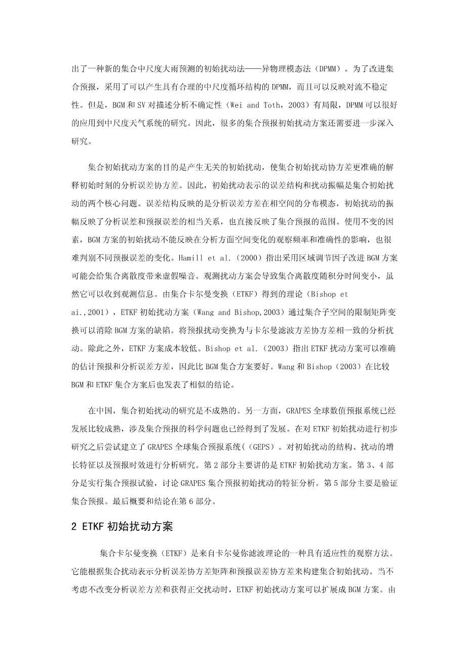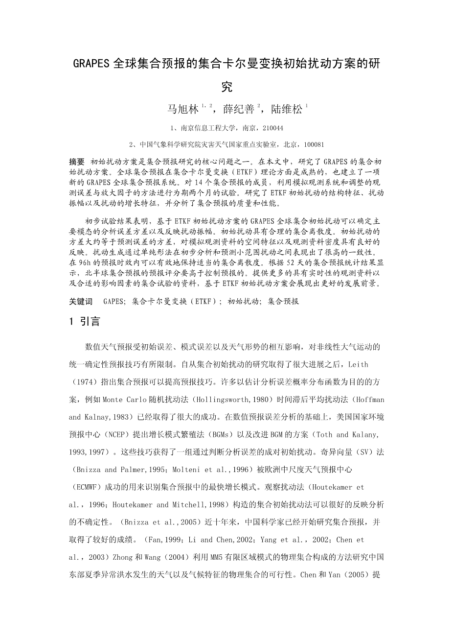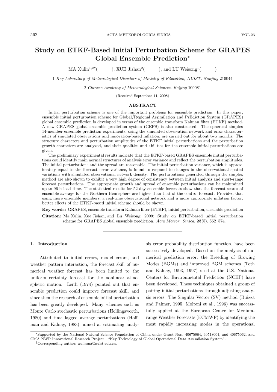 GRAPES全球集合预报的集合卡尔曼变换初始扰动方案的研究外文翻译资料