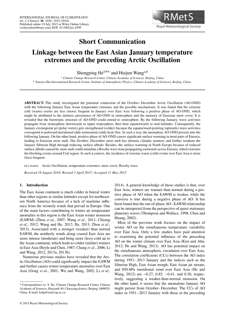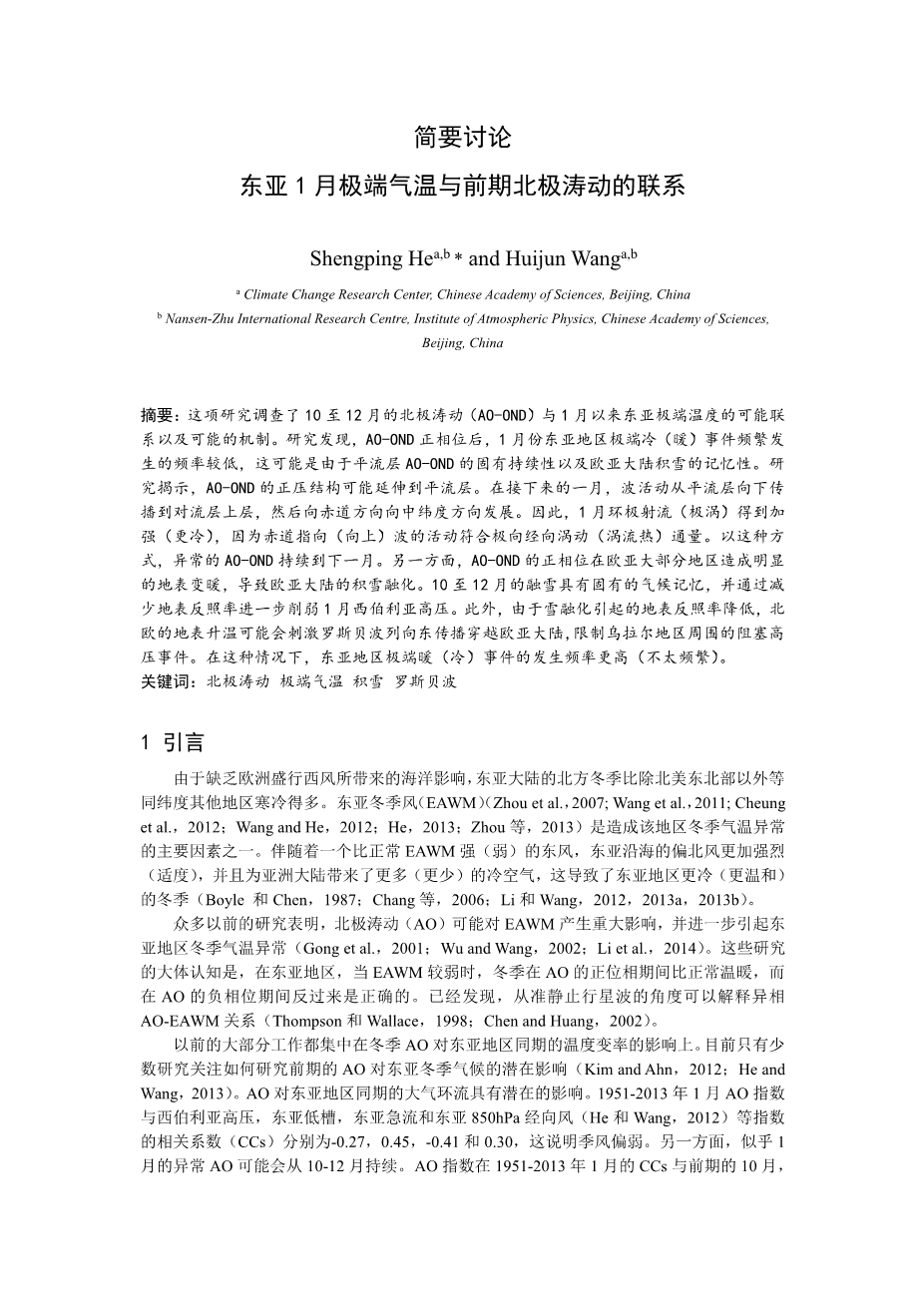 简要讨论东亚1月极端气温与前期北极涛动的联系外文翻译资料