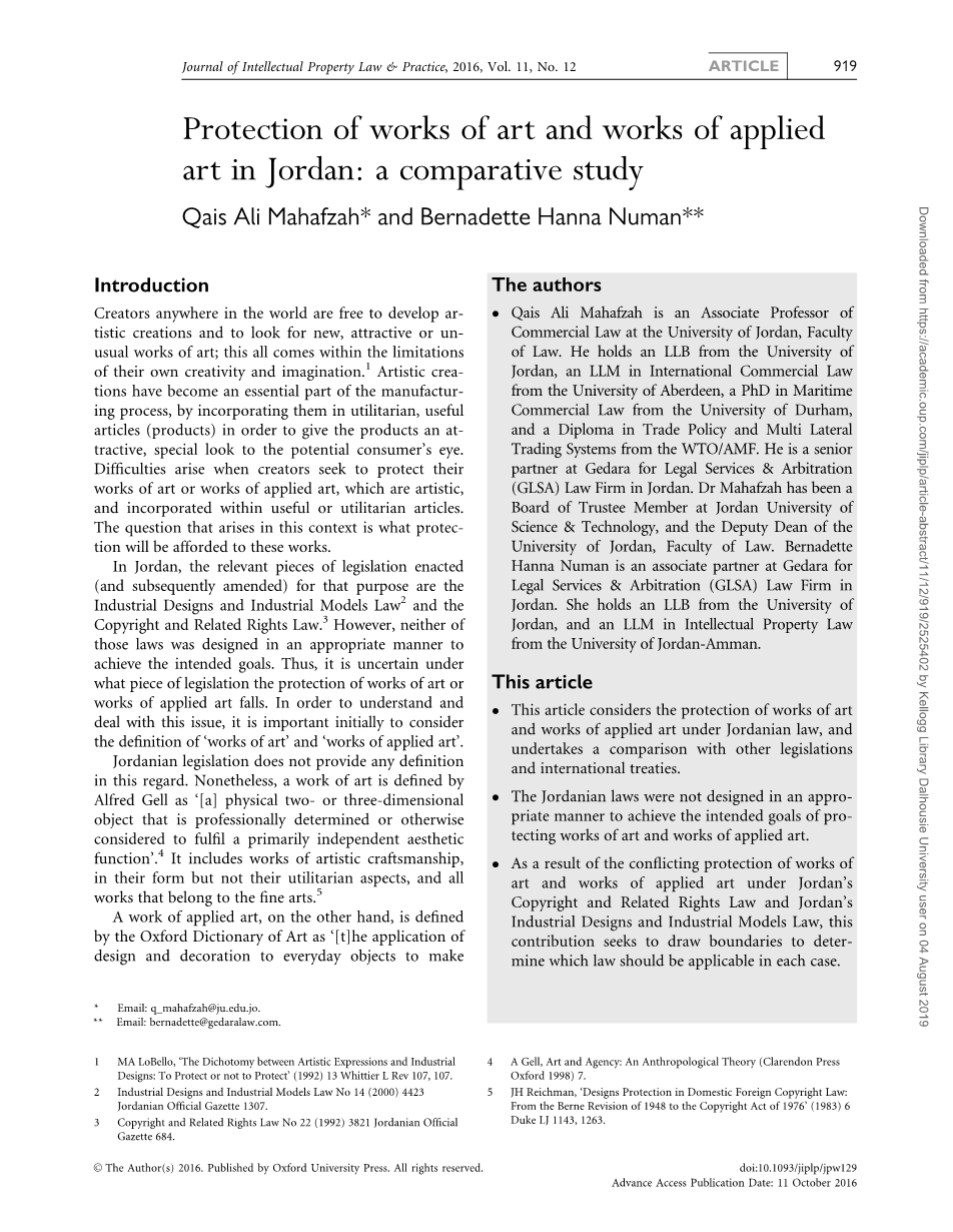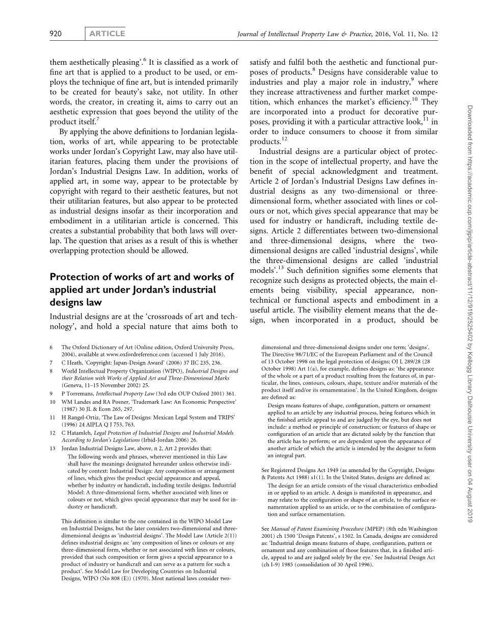 约旦艺术作品和实用艺术作品的保护:比较研究外文翻译资料 2023-02-03 11:00:13 英语原文共 7 页,剩余内容已隐藏,支付完成后下载完整资料 英语原文共 10 页,剩余内容已隐藏,支付完成后下载完整资料 资料编号:[270118],资料为PDF文档或Word文档,PDF文档可免费转换为Word 您需要先支付 30元 才能查看全部内容!立即支付 发小红书推广免费获取该资料资格。点击链接进入获取推广文案即可: Ai一键组稿 | 降AI率 | 降重复率 | 论文一键排版 PREVIOUS NEXT 您可能感兴趣的文章 《欧盟一般数据保护条例》的实效分析与启示研究文献综述 值班律师制度研究——以认罪认罚从宽制度为视角文献综述 我国刑事责任年龄制度的分析文献综述 浅析我国家政服务人员的劳动权益保障开题报告 论海洋倾废许可证制度开题报告 人体器官移植涉及的刑法问题与完善开题报告 我国行政公益诉讼制度的建立与完善文献综述 消费欺诈认定标准研究文献综述 论否定公司独立人格的基本要件文献综述 农村宅基地流转问题研究文献综述