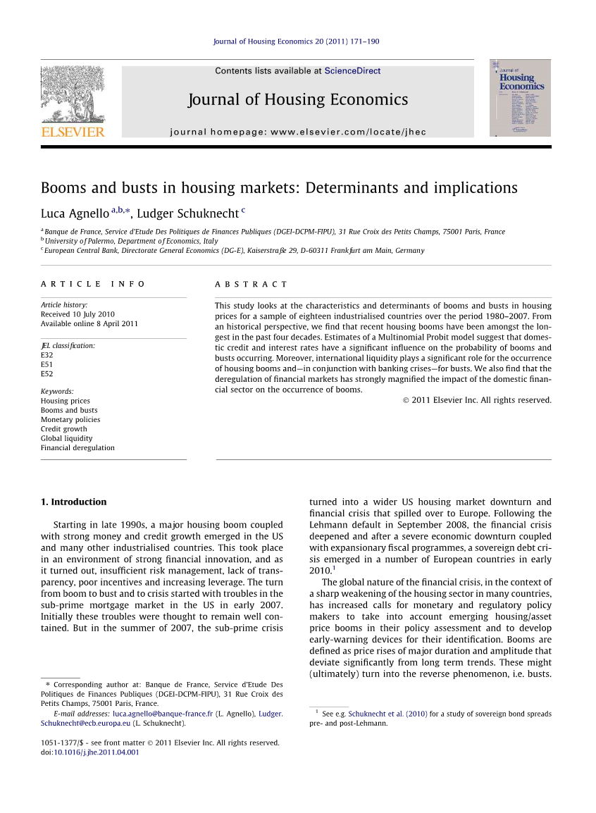 摘要:这项研究考察了1980年至2007年间18个工业化国家的房地产价格繁荣与萧条的特征和决定因素。从历史的角度来看,我们发现最近的房地产繁荣是过去四十年来最大的繁荣之一。对多项概率模型的估计表明,国内信贷和利率对发生繁荣和萧条的概率有重要影响。此外,国际流动性对房地产繁荣的发生以及与银行业危机同时出现的泡沫破裂发挥着重要作用。我们还发现,对金融市场的放松管制极大地影响了国内金融行业的繁荣。