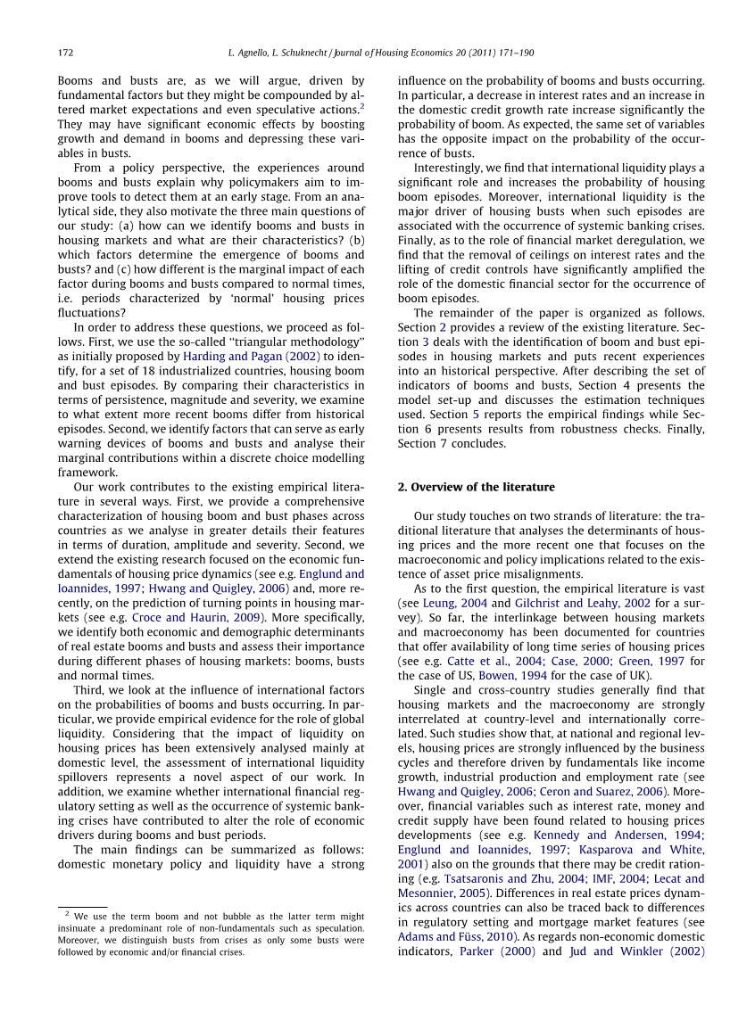 从政策的角度来看,围绕繁荣和萧条的经历解释了为什么政策制定者打算在早期阶段提高检测工具的有效性。从分析的角度来看,它们也激发了我们研究的三个主要问题:(a)我们如何识别房地产市场的繁荣和萧条,以及它们的特征是什么?(b)哪些因素决定了繁荣和萧条的出现?(三)与正常时期,即以“正常”房价上涨为特征的时期相比,繁荣和萧条时期各因素的边际影响有何不同?