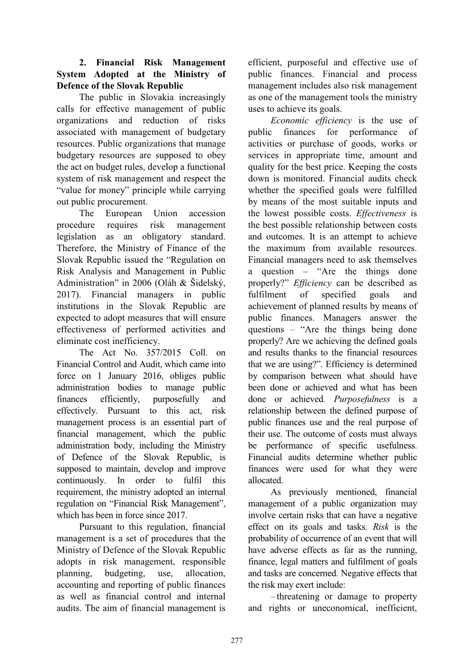 本文的第二部分涉及到斯洛伐克共和国国防部与财务管理有关的风险管理进程。