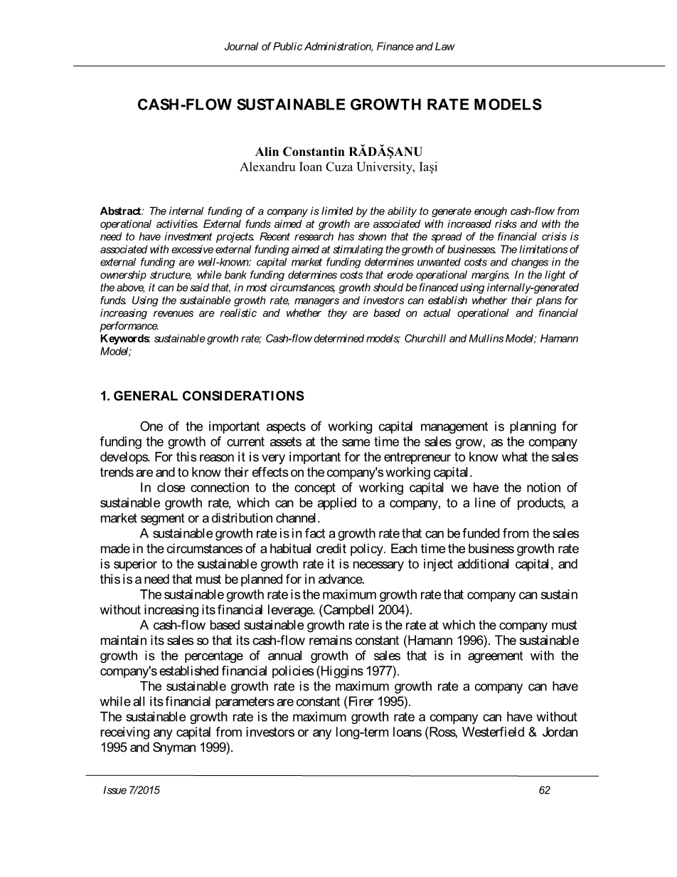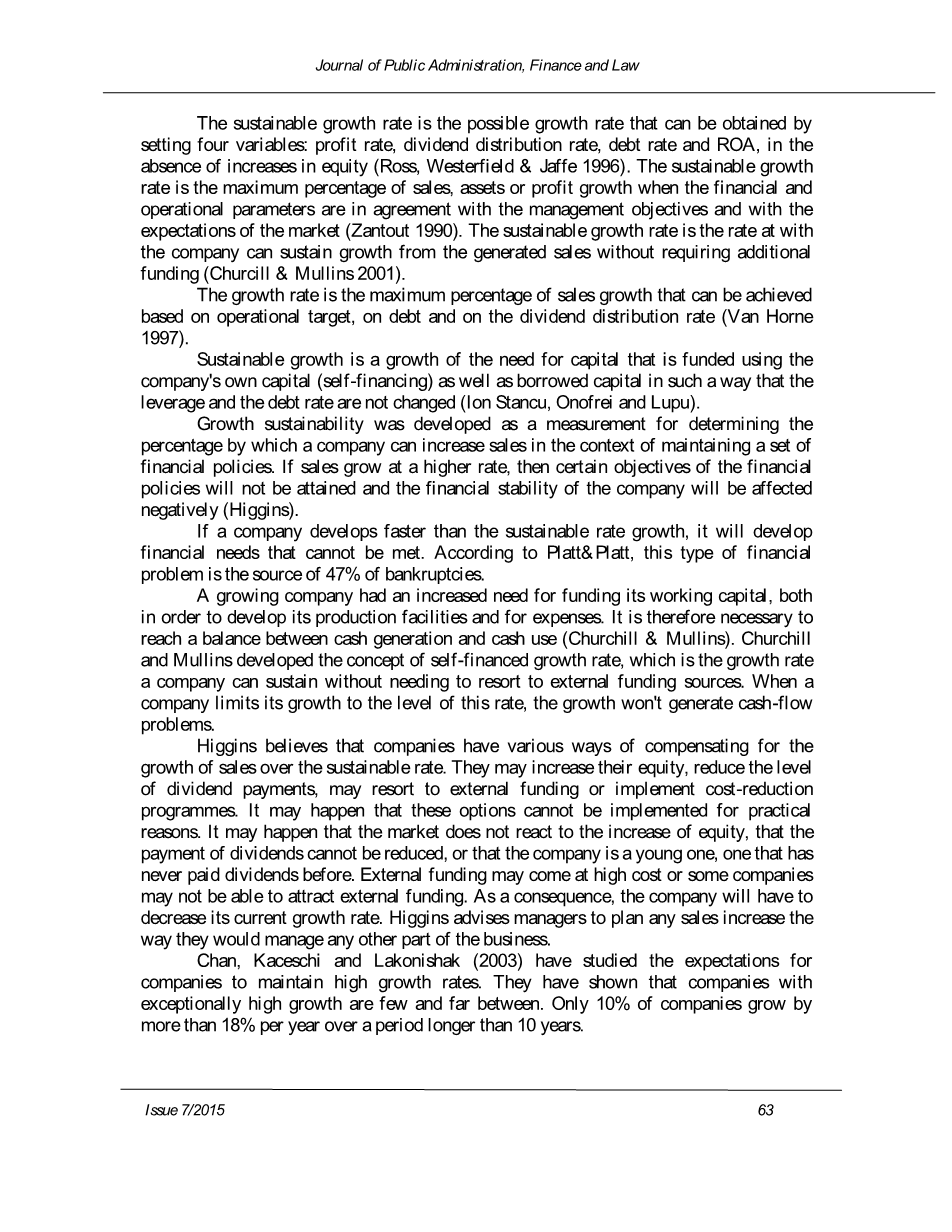 可持续增长是一种基于使用公司自有资金(自筹资金)以及借款资本的杠杆和债务利率不变的资本需求的增长(Ion Stancu,Onofrei和Lupu)。