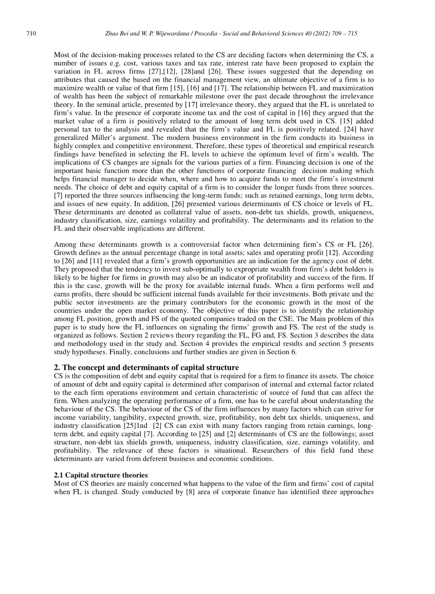 大多数与资本结构有关的决策过程都是在确定资本结构时的决定因素,成本、各种税收和税率、利率等问题都已被建议在公司财务杠杆变量中予以扣除[27],[12],[28]和[26]。这些问题表明,基于财务管理观点,企业的最终目标是使该公司的财富或价值最大化[15],[16]和17]。财务杠杆与财富最大化之间的关系在过去十年中一直是无关理论研究的一个重要里程碑。在[17]无关理论提出的开创性文章中,他们认为财务杠杆与企业价值无关。在[16]公司所得税和资本成本存在的情况下,他们认为企业的市场价值与资本结构使用的长期债务数额呈正相关。[15]在分析中增加了个人所得税,表明公司价值与财务杠杆呈正相关。[24]概括了Miller的论点,现代企业的经营环境是在高度复杂和竞争的环境中进行的。因此,这些类型的理论研究和实证研究结果都有利于选择最优的财务杠杆水平,以达到企业财富的最优水平。资本结构变化的含义是对公司各方的信号。融资决策是企业财务决策中最重要的基本功能之一,它帮助财务经理决定何时、何地、如何募集资金满足公司的投资需求。企业债务和股本的选择是从三个方面考虑较长的资金来源。[7]报告了影响长期基金的三个来源:留存收益、长期债务和发行新股。此外,[26]提出了决定资本结构选择或财务杠杆水平的各种因素。这些决定因素被表示为资产的抵押品价值、非债务税盾、增长、独特性、行业分类、资金,规模,收益波动和盈利能力。决定因素及其与财务杠杆的关系及其可观察的含义是不同的。