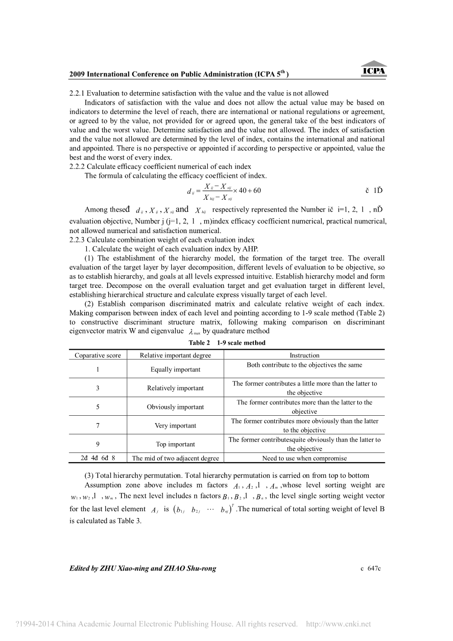 d i表示i i(i=1,2,hellip;)(N)各评价目标的总效能系数,dij表示数i(i=1,2,hellip;,n)评价对象,j(j=1,2,hellip;,m)指数效力系数,W jlowast;表示数j(j=1,2,hellip;)(M)评价指标组合权重
