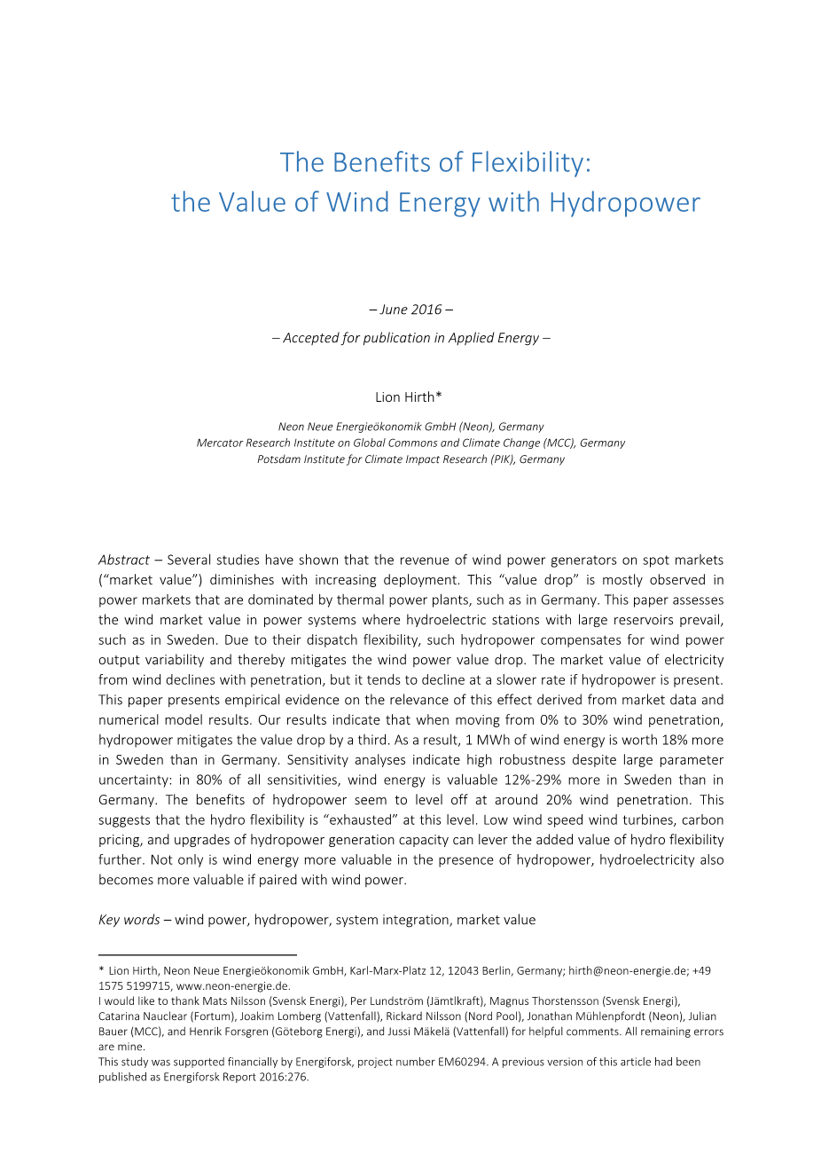 与热力系统相比,我们预计水库的灵活性将减少水电系统中风力发电的价值下降。这种效应的大小是一个经验问题。