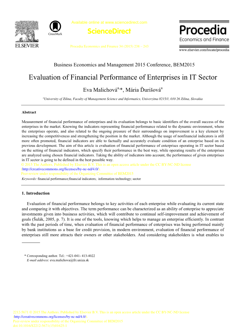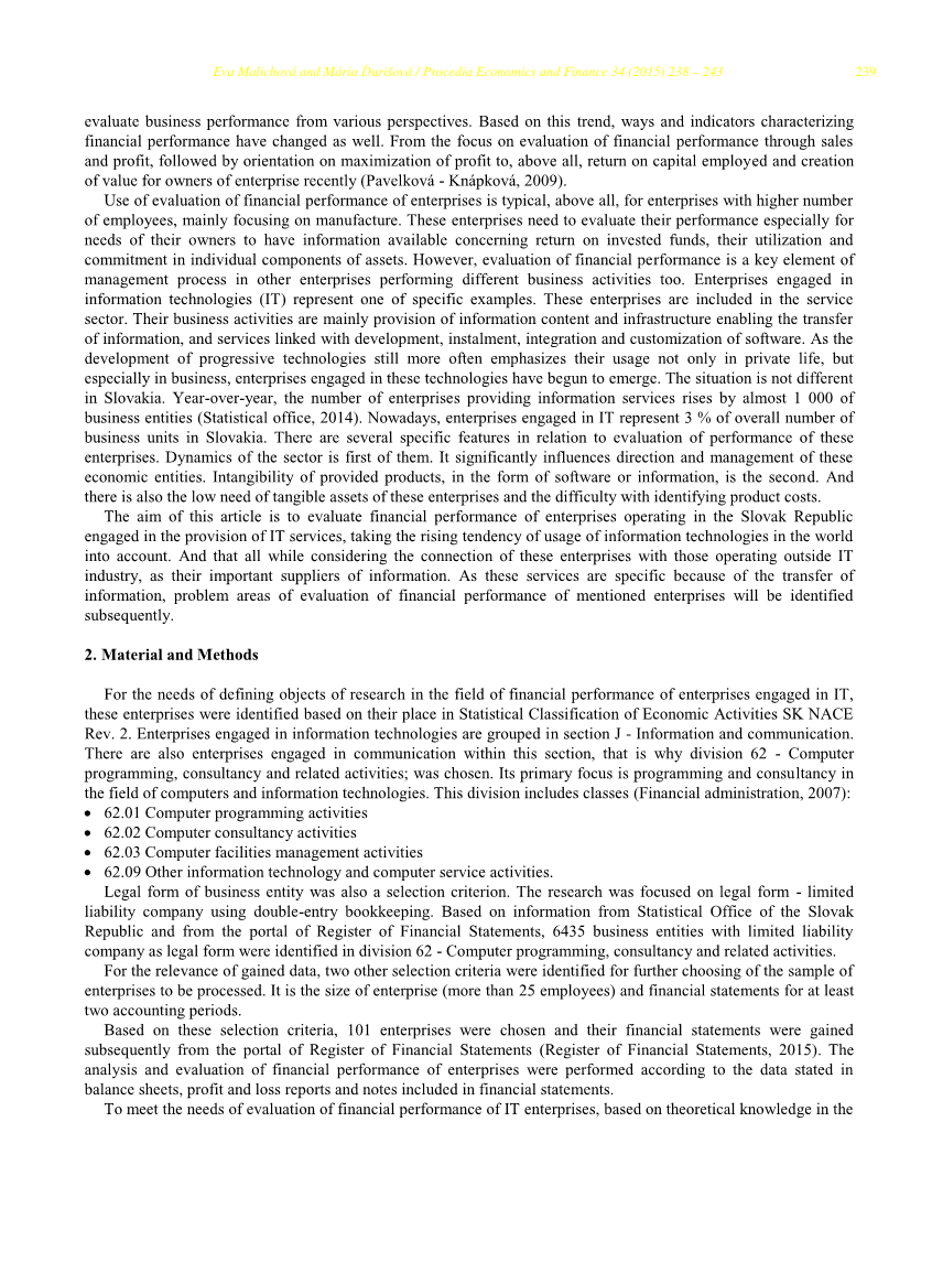 财务绩效评估属于每个企业的关键活动,同时评估其现状并与目标进行比较。 绩效这个术语可以表征为企业将投资注入商业活动的能力,这将有助于企业持续的自我完善和实现目标。 这是工具之一,来了解哪些有助于高效管理企业。 与过去一段时期相比,当时的企业财务绩效评估主要是银行机构为信贷提供基础,在现代环境下,企业财务绩效评估更加吸引了其所有者或其他利益相关者。考虑到利益相关者是从各种角度评估业务绩效, 基于这一趋势,表征财务绩效的方式和指标也发生了变化。 从注重于通过销售和利润对财务绩效进行评估,以最大化利润为导向,到如今首先关注企业所有者回报率和创造价值。首先,对企业财务业绩的评估是典型的,对于员工数量较多的企业来说也是如此,主要集中在制造业。这些企业尤其需要评估他们的表现,他们的所有者需要获得有关投资资金回报、资产个别组成部分的利用情况和信息。然而,对财务业绩的评估是一个关键因素,其他企业进行不同业务活动的管理流程也是如此。从事信息技术(IT)的企业就是一个具体的例子。这些企业都被包含在该服务行业。他们的业务活动主要是提供信息内容和基础设施以实现转移信息以及与开发,安装,集成和软件定制相关的服务。由于先进技术的发展,更多地不仅强调它们在私人生活中的使用,而且还在于一些其他的方面,特别是在商业领域,从事这些技术的企业已经开始出现。这种情况在斯洛伐克并没有不同。与去年同期相比,提供信息服务的企业数量增长近1000个(统计局,2014年)。目前,从事IT行业的企业占斯洛伐克服务行业总数的3%。关于评估这些企业性能的几个具体特征,该行业的动态是其中的第一个,它显著影响着这些企业的管理和发展方向。第二个就是提供的无形的产品,以软件或是信息的形式,而且这些企业的有形资产需求也很低,并且在确定产品成本方面也存在困难。本文的目的是评估在斯洛伐克共和国从事提供信息技术服务的企业的财务业绩,鉴于世界范围内信息技术使用的上升趋势。 而这一切同时考虑到这些企业作为重要的信息供应商与IT行业以外的企业之间的联系。 由于这些服务因信息传递而具体,因此随后将确定所述企业财务业绩评估中的问题领域。