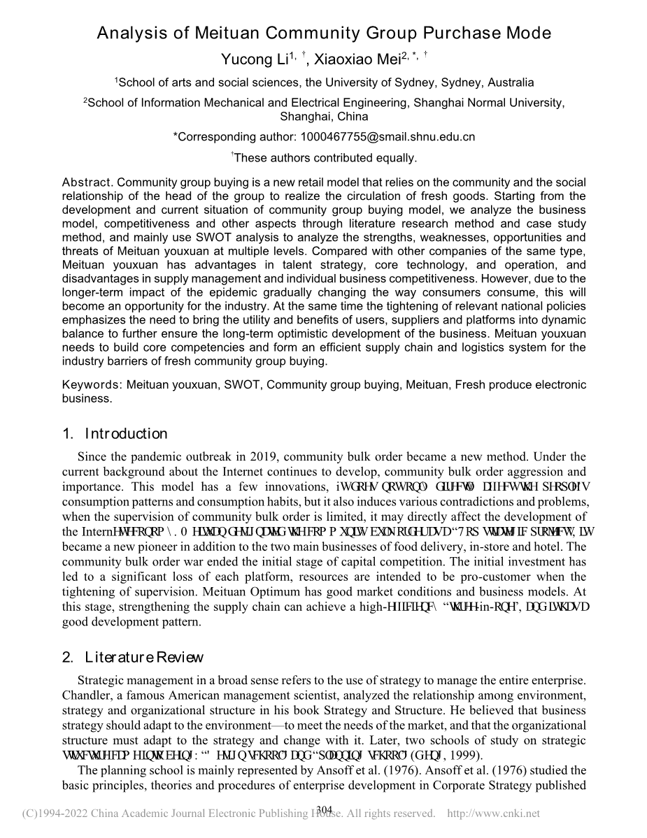 美团社区团购模式探析外文翻译资料 2023-06-28 11:25:54 英语原文共 7 页,剩余内容已隐藏,支付完成后下载完整资料 英语译文共 6 页,剩余内容已隐藏,支付完成后下载完整资料 资料编号:[603163],资料为PDF文档或Word文档,PDF文档可免费转换为Word 您需要先支付 30元 才能查看全部内容!立即支付 发小红书推广免费获取该资料资格。点击链接进入获取推广文案即可: Ai一键组稿 | 降AI率 | 降重复率 | 论文一键排版 PREVIOUS NEXT 您可能感兴趣的文章 基于Hedonic模型的地铁沿线房地产价格影响因素分析–以苏州地铁2号线沿线为例开题报告 江苏省上市公司经济增加值测算与结果分析开题报告 互联网对公司财务管理的影响—–以青岛海尔集团为例开题报告 产权性质、研发投入与企业绩效–基于信息技术企业的实证分析文献综述 女性管理者对碳信息披露水平的影响文献综述 基于COSO内部控制框架的我国制造业上市公司企业信息披露现状评价开题报告 内部控制与企业价值增长文献综述 我国分行业经济增加值测算与结果分析开题报告 盈余管理与投资效率的相关性研究——以新能源行业上市公司为例开题报告 外商投资对江苏省上市公司职工收入的影响开题报告