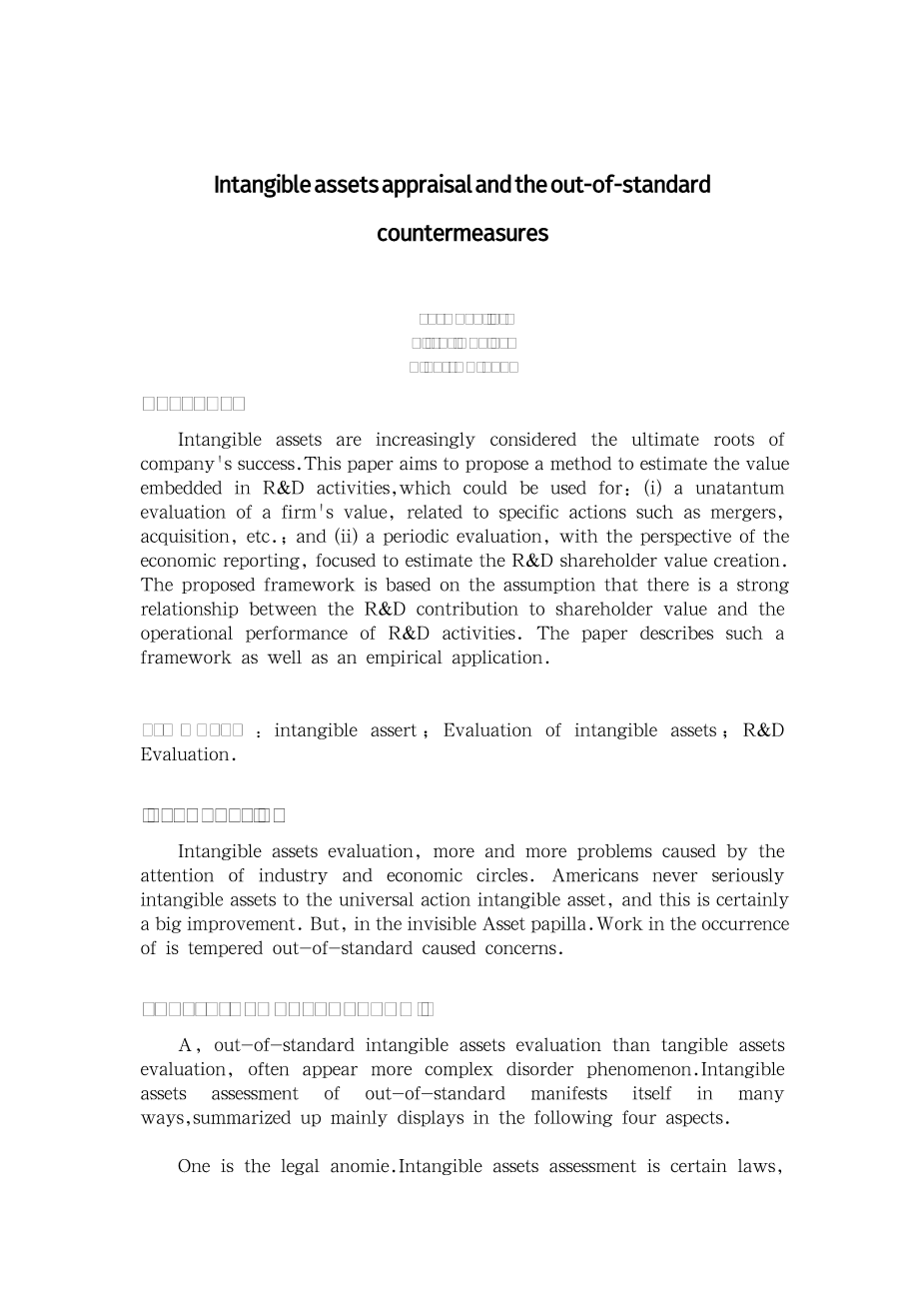无形资产评估及超标对策外文翻译资料 2023-07-03 09:27:34 英语原文共 8 页,剩余内容已隐藏,支付完成后下载完整资料 英语译文共 16 页,剩余内容已隐藏,支付完成后下载完整资料 资料编号:[602883],资料为PDF文档或Word文档,PDF文档可免费转换为Word 您需要先支付 30元 才能查看全部内容!立即支付 发小红书推广免费获取该资料资格。点击链接进入获取推广文案即可: Ai一键组稿 | 降AI率 | 降重复率 | 论文一键排版 PREVIOUS NEXT 您可能感兴趣的文章 基于Hedonic模型的地铁沿线房地产价格影响因素分析–以苏州地铁2号线沿线为例开题报告 江苏省上市公司经济增加值测算与结果分析开题报告 互联网对公司财务管理的影响—–以青岛海尔集团为例开题报告 产权性质、研发投入与企业绩效–基于信息技术企业的实证分析文献综述 女性管理者对碳信息披露水平的影响文献综述 基于COSO内部控制框架的我国制造业上市公司企业信息披露现状评价开题报告 内部控制与企业价值增长文献综述 我国分行业经济增加值测算与结果分析开题报告 盈余管理与投资效率的相关性研究——以新能源行业上市公司为例开题报告 外商投资对江苏省上市公司职工收入的影响开题报告
