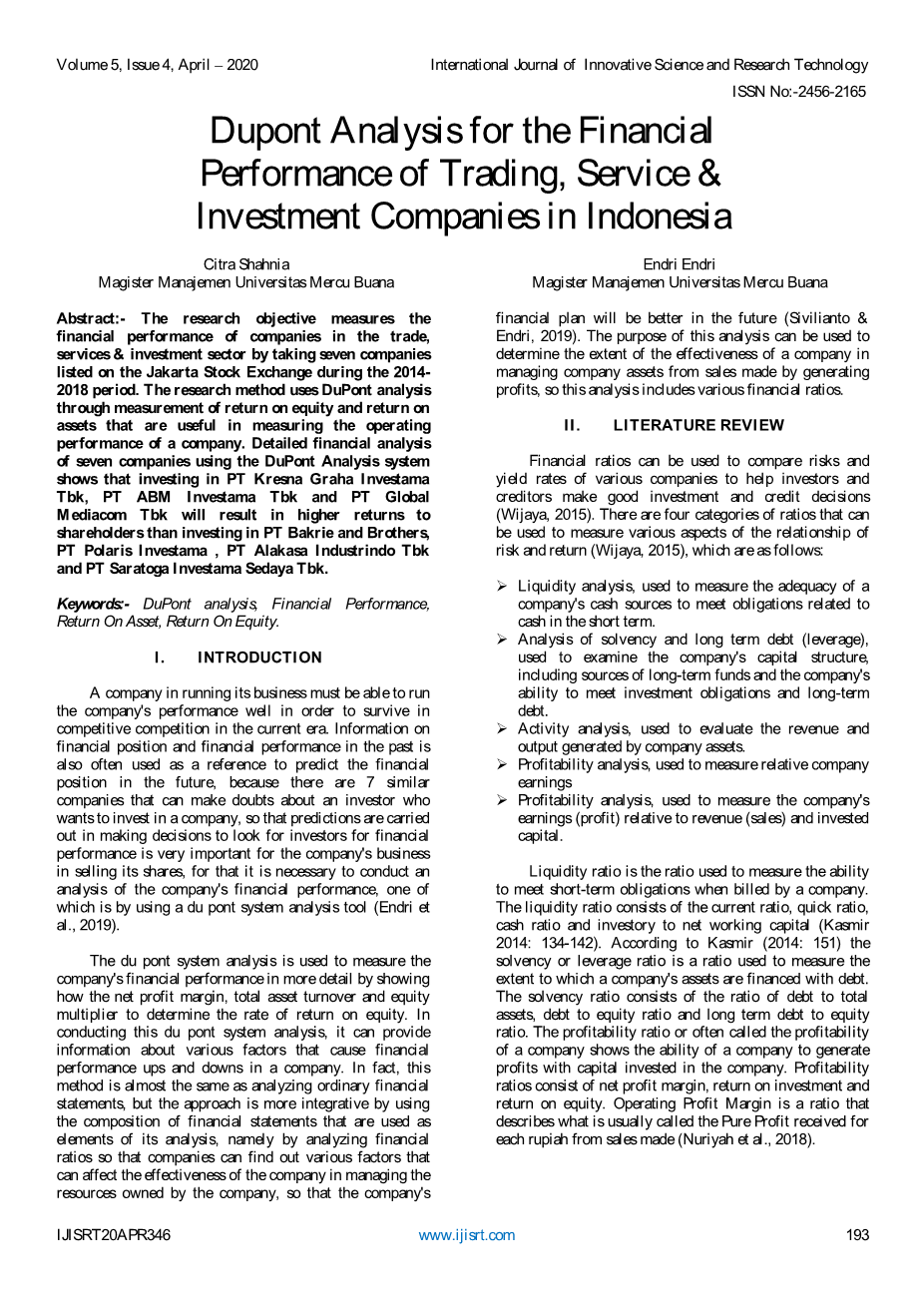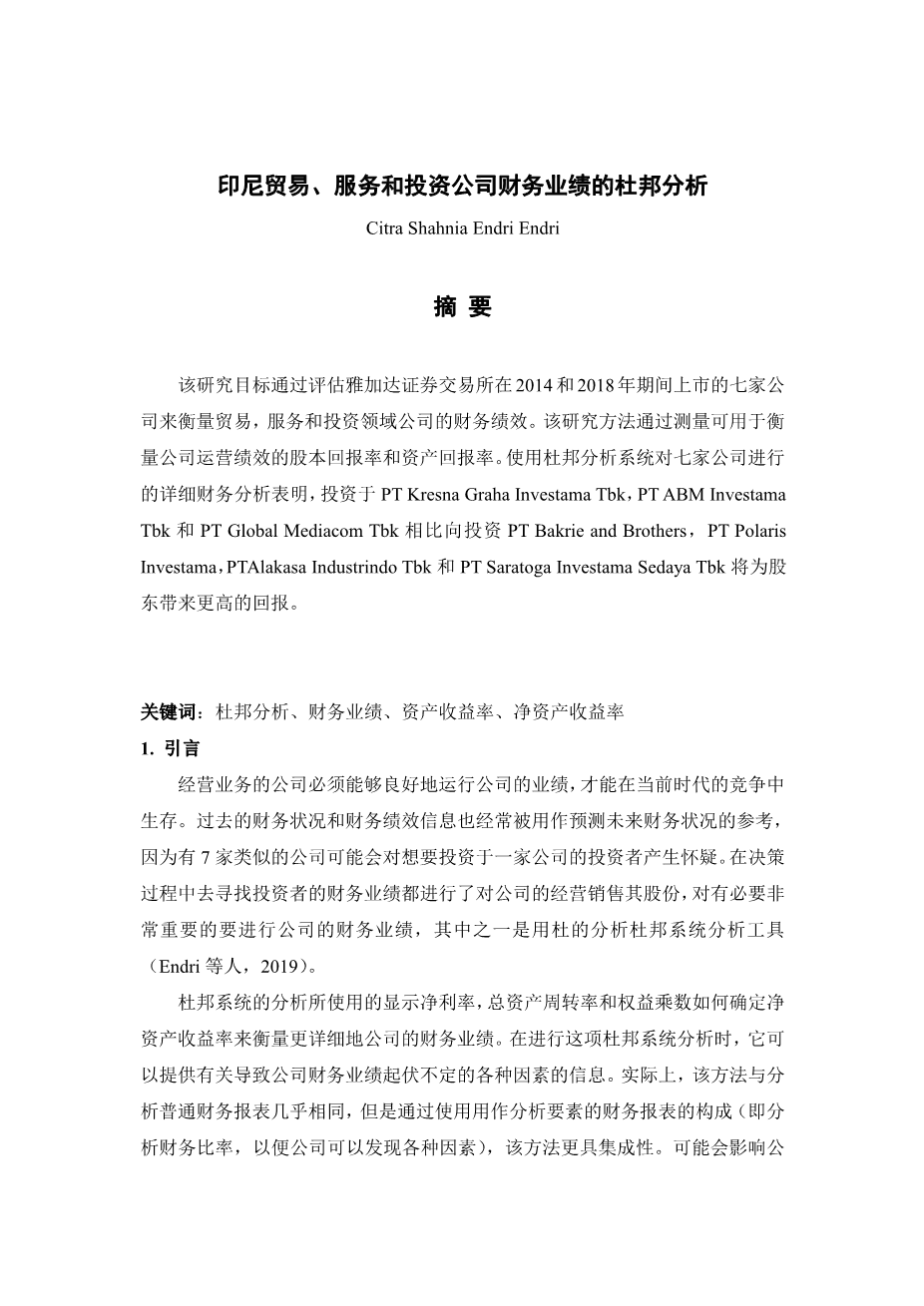印尼贸易、服务和投资公司财务业绩的杜邦分析外文翻译资料