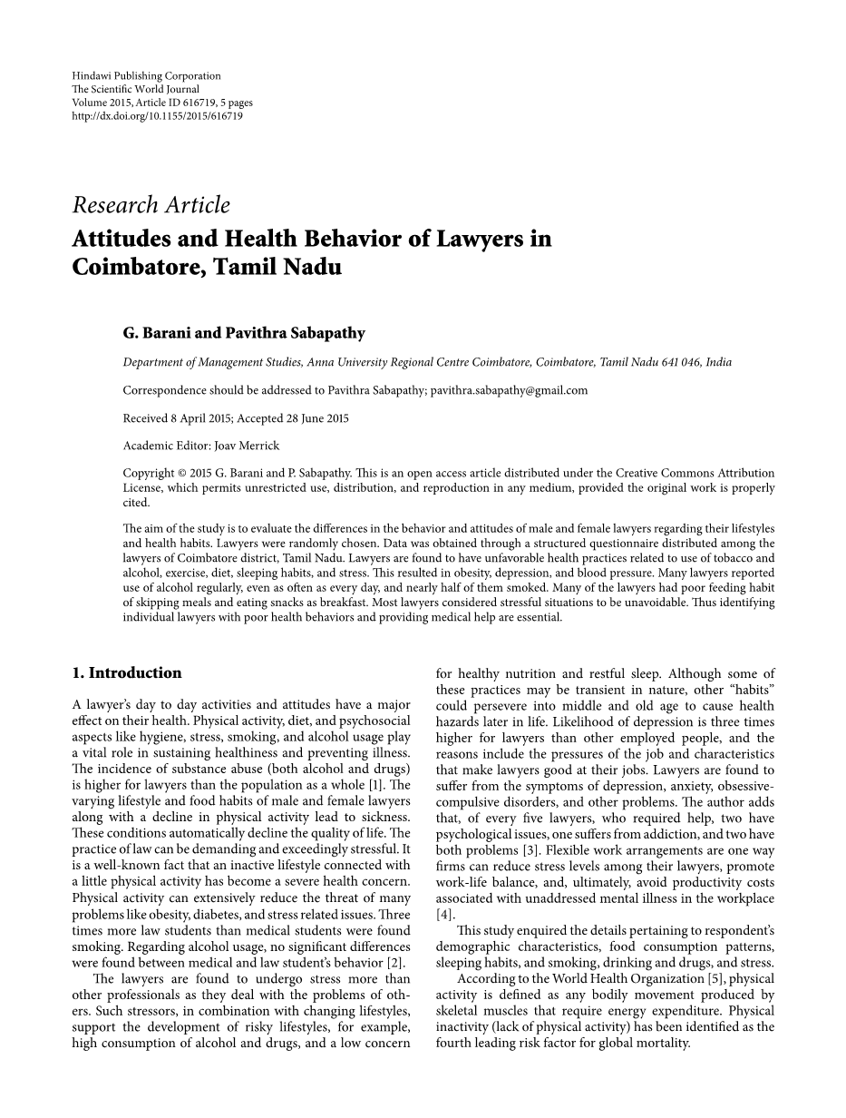 因此,这项研究的主要目的是找出男女律师在行为和对待生活方式和健康习惯的态度方面的差异。