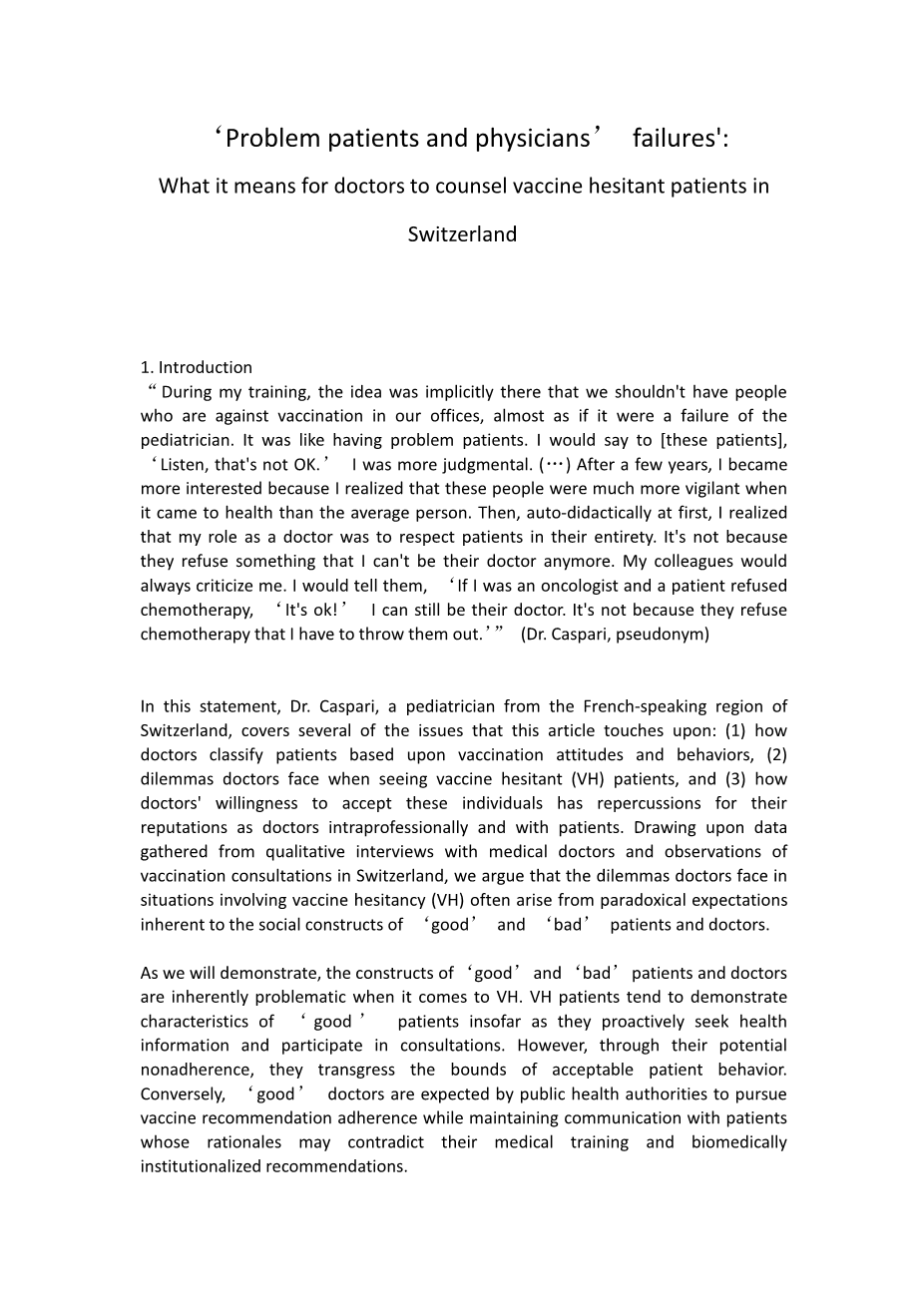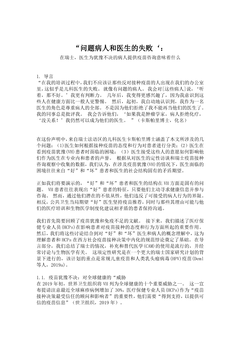 问题病人和医生的失败: 在瑞士,医生为犹豫不决的病人提供疫苗咨询意味着什么外文翻译资料 2023-02-02 08:56:18 英语原文共 8 页,剩余内容已隐藏,支付完成后下载完整资料 英语译文共 6 页,剩余内容已隐藏,支付完成后下载完整资料 资料编号:[260912],资料为PDF文档或Word文档,PDF文档可免费转换为Word 您需要先支付 30元 才能查看全部内容!立即支付 发小红书推广免费获取该资料资格。点击链接进入获取推广文案即可: Ai一键组稿 | 降AI率 | 降重复率 | 论文一键排版 PREVIOUS NEXT 您可能感兴趣的文章 新型城镇化视角下基层社会治理模式研究文献综述 基于SWOT分析的民营企业朴素式创新研究文献综述 城市社区居家养老需求影响因素研究——以南京市为例文献综述 中国煤炭利用生态效率评价及提升对策开题报告 社区融合度及其影响因素研究——以姜堰三水四大社区为例开题报告 不确定条件下人员疏散路径选择决策行为模型研究文献综述 价值工程在饭店成本控制中的应用以某中等城市经济型饭店为例外文翻译资料 管理前厅部:马来西亚酒店的人员配置问题外文翻译资料 影响酒店运维成本的因素外文翻译资料 在马来西亚巴生谷地区,酒店员工满意度和忠诚度的联系外文翻译资料