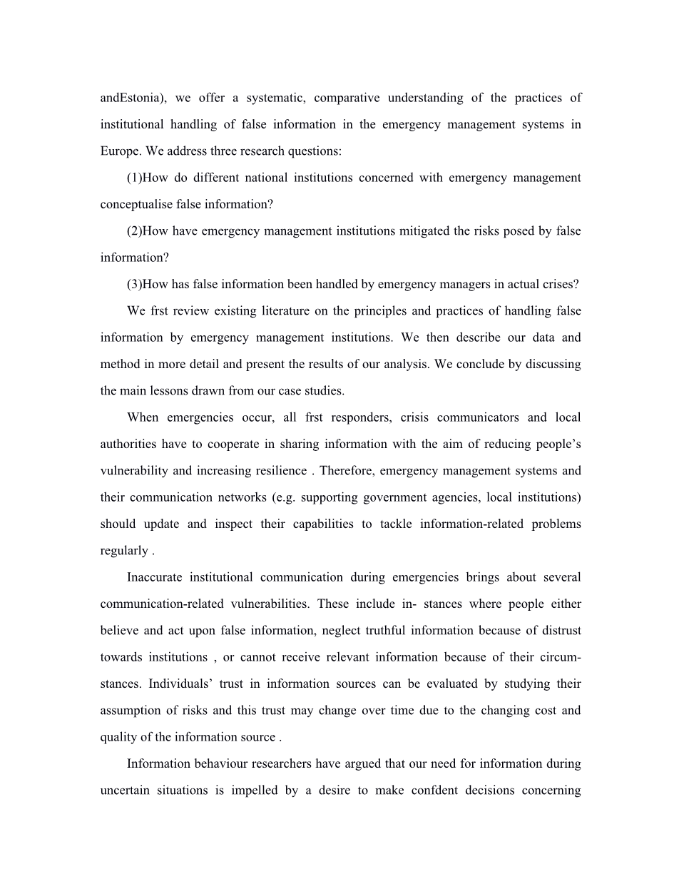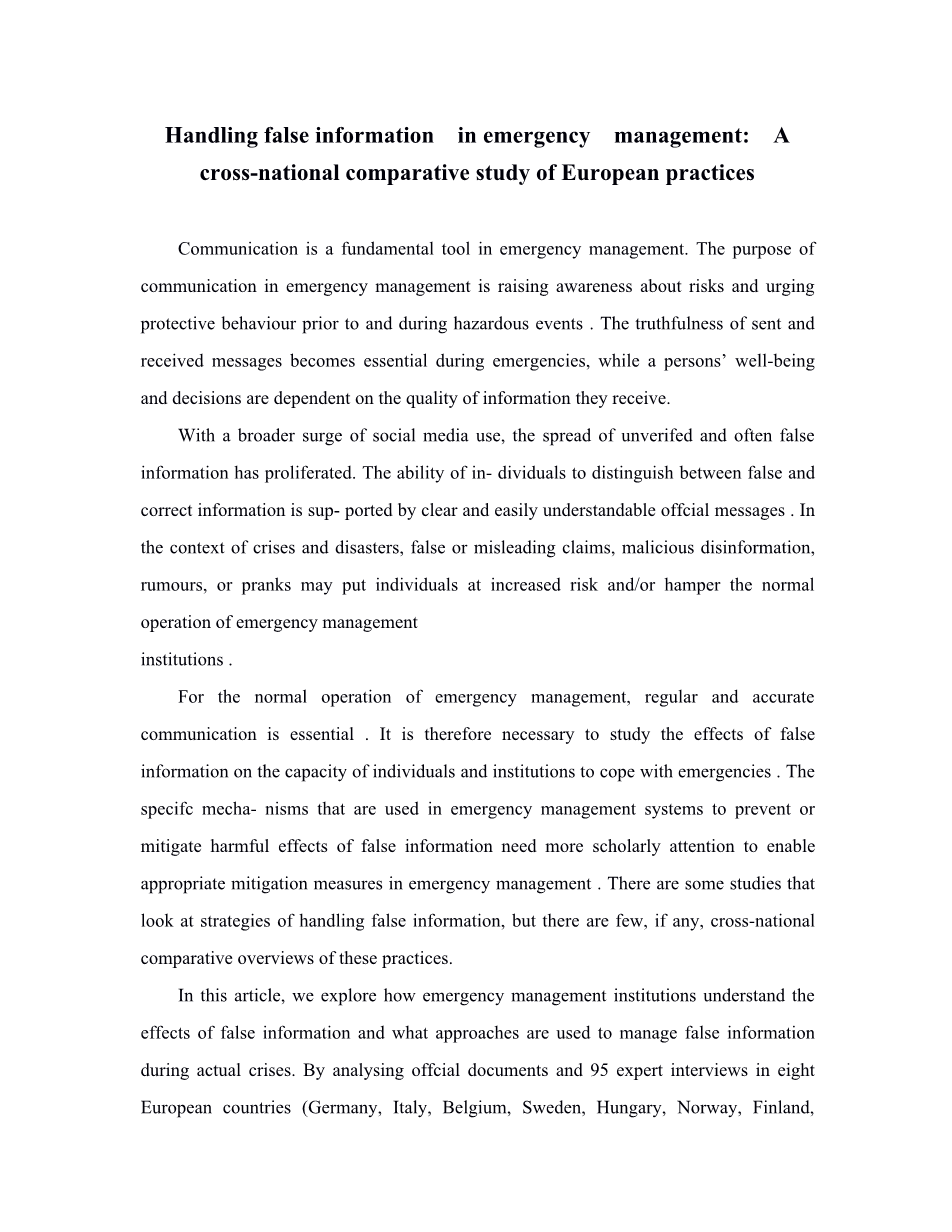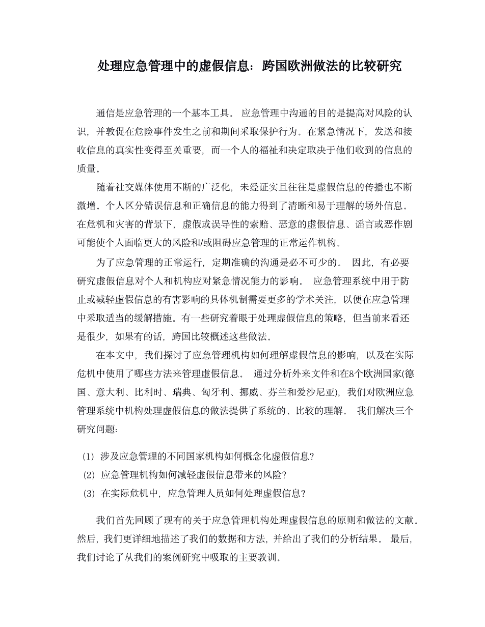 处理应急管理中的虚假信息:跨国欧洲做法的比较研究外文翻译资料 2023-02-02 09:00:59 英语原文共 6 页,剩余内容已隐藏,支付完成后下载完整资料 英语译文共 5 页,剩余内容已隐藏,支付完成后下载完整资料 资料编号:[260887],资料为PDF文档或Word文档,PDF文档可免费转换为Word 您需要先支付 30元 才能查看全部内容!立即支付 发小红书推广免费获取该资料资格。点击链接进入获取推广文案即可: Ai一键组稿 | 降AI率 | 降重复率 | 论文一键排版 PREVIOUS NEXT 您可能感兴趣的文章 新型城镇化视角下基层社会治理模式研究文献综述 基于SWOT分析的民营企业朴素式创新研究文献综述 城市社区居家养老需求影响因素研究——以南京市为例文献综述 中国煤炭利用生态效率评价及提升对策开题报告 社区融合度及其影响因素研究——以姜堰三水四大社区为例开题报告 不确定条件下人员疏散路径选择决策行为模型研究文献综述 价值工程在饭店成本控制中的应用以某中等城市经济型饭店为例外文翻译资料 管理前厅部:马来西亚酒店的人员配置问题外文翻译资料 影响酒店运维成本的因素外文翻译资料 在马来西亚巴生谷地区,酒店员工满意度和忠诚度的联系外文翻译资料