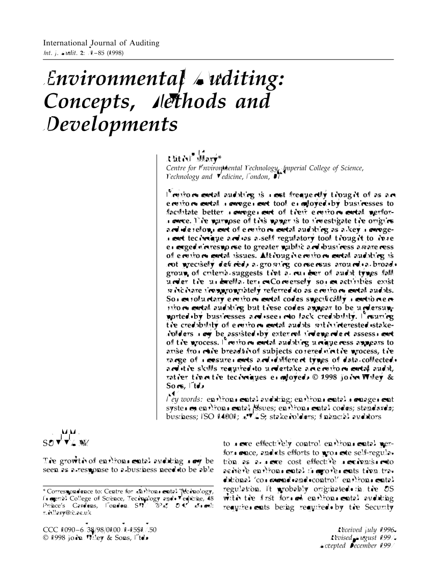 论文还对审计术语在尽职调查评估中的使用提出了质疑。这表明环境因素的参与《环境守则》内的审计工作,已成为商界采纳的策略,以掌握这概念。有人认为环境管理系统(EMS)和环境审计标准的最新发展,在国家,欧洲,和国际水平是对更广泛的政策要求的回应,即摆脱对规范的“命令和控制”环境立法措施的唯一要求环境的改善。最后,讨论了进行环境审计所需要的技能,并建议财务审计员在这一过程中可能具有的作用是有限的。