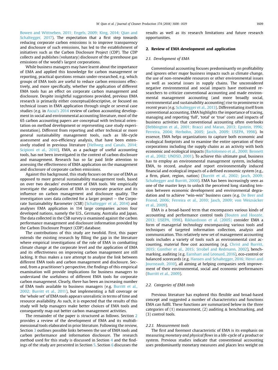 论文的其余部分结构如下。第二节回顾了以往文献中阐述的EMA工具和其多维度工具的发展情况。之后,第三节概述了使用EMA工具的使用与碳性能和信息披露之间的可能联系。第四节讨论了本研究的研究方法,第五节介绍了本研究的实证结果。第六节探讨了研究结果以及研究的不足和未来的研究展望。