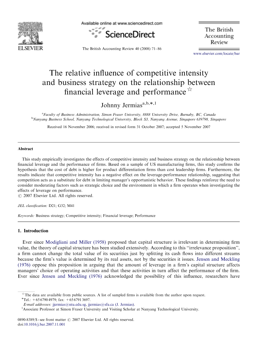 竞争强度和商业战略的相对影响财务杠杆之间的关系和性能