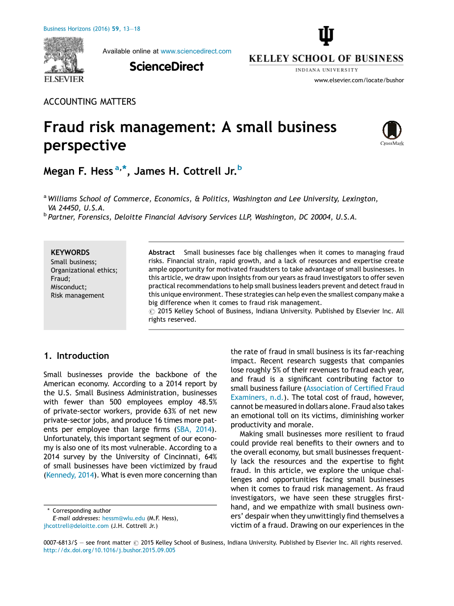 摘要:在管理欺诈风险方面,小型企业面临着巨大的挑战。财务紧张,经济快速增长,缺乏资源和专业知识为激励诈骗分子利用小型企业创造了充足的机会。在本文中,我们借鉴了多年来的观点,作为欺诈调查员提供了七项实用建议,以帮助小企业领导者在此独特环境中防范和检测欺诈行为。这些策略甚至可以帮助最小的公司在欺诈风险管理方面发挥重大作用。