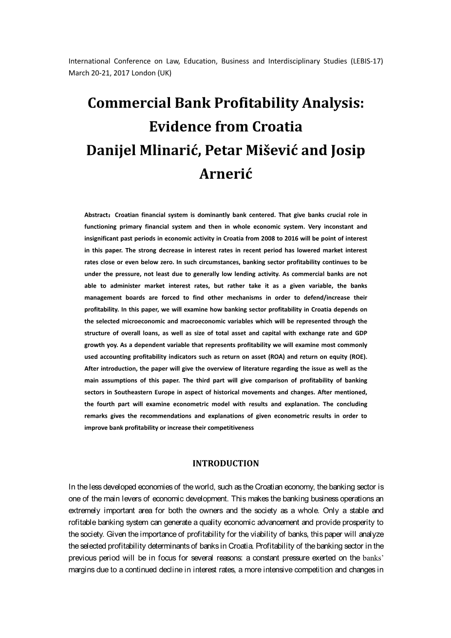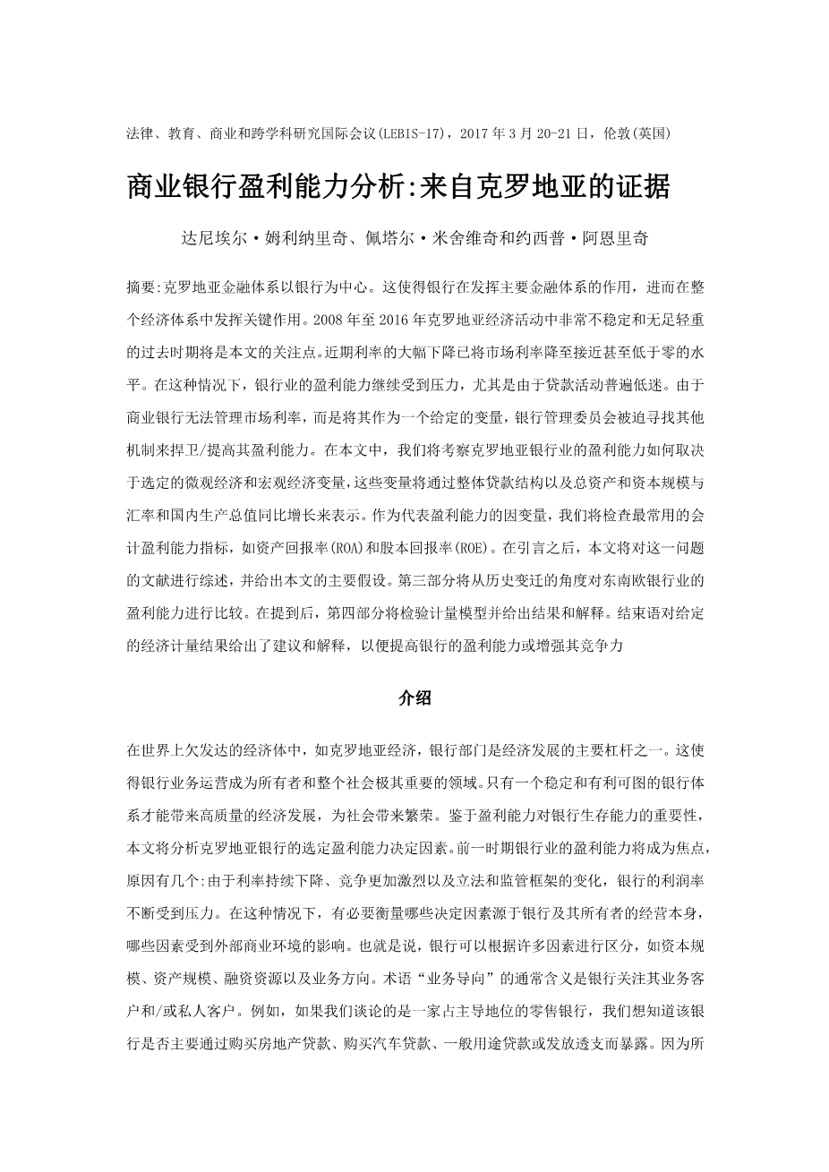 商业银行盈利能力分析:来自克罗地亚的证据外文翻译资料 2023-02-08 09:40:46 英语原文共 6 页,剩余内容已隐藏,支付完成后下载完整资料 英语译文共 6 页,剩余内容已隐藏,支付完成后下载完整资料 资料编号:[245371],资料为PDF文档或Word文档,PDF文档可免费转换为Word 您需要先支付 30元 才能查看全部内容!立即支付 发小红书推广免费获取该资料资格。点击链接进入获取推广文案即可: Ai一键组稿 | 降AI率 | 降重复率 | 论文一键排版 PREVIOUS NEXT 您可能感兴趣的文章 互联网背景下制造业上市公司业绩评价分析开题报告 互联网专车行业商业模式对收入确认的影响分析文献综述 自然资源资产审计方法与应用实务研究文献综述 会计信息披露质量对投资回报的影响研究——针对房地产行业文献综述 资本结构对企业盈利能力影响研究,以万科集团为例文献综述 我国企业社会责任信息披露对资本成本的影响研究文献综述 公司治理与高管薪酬的实证研究——来自金融业上市公司的经验证据文献综述 上市公司人力资源信息披露与企业价值研究文献综述 环境规制、技术创新与企业绩效:来自于制造业上市公司的证据文献综述 市场条件下工业企业环境绩效与财务绩效关系研究开题报告